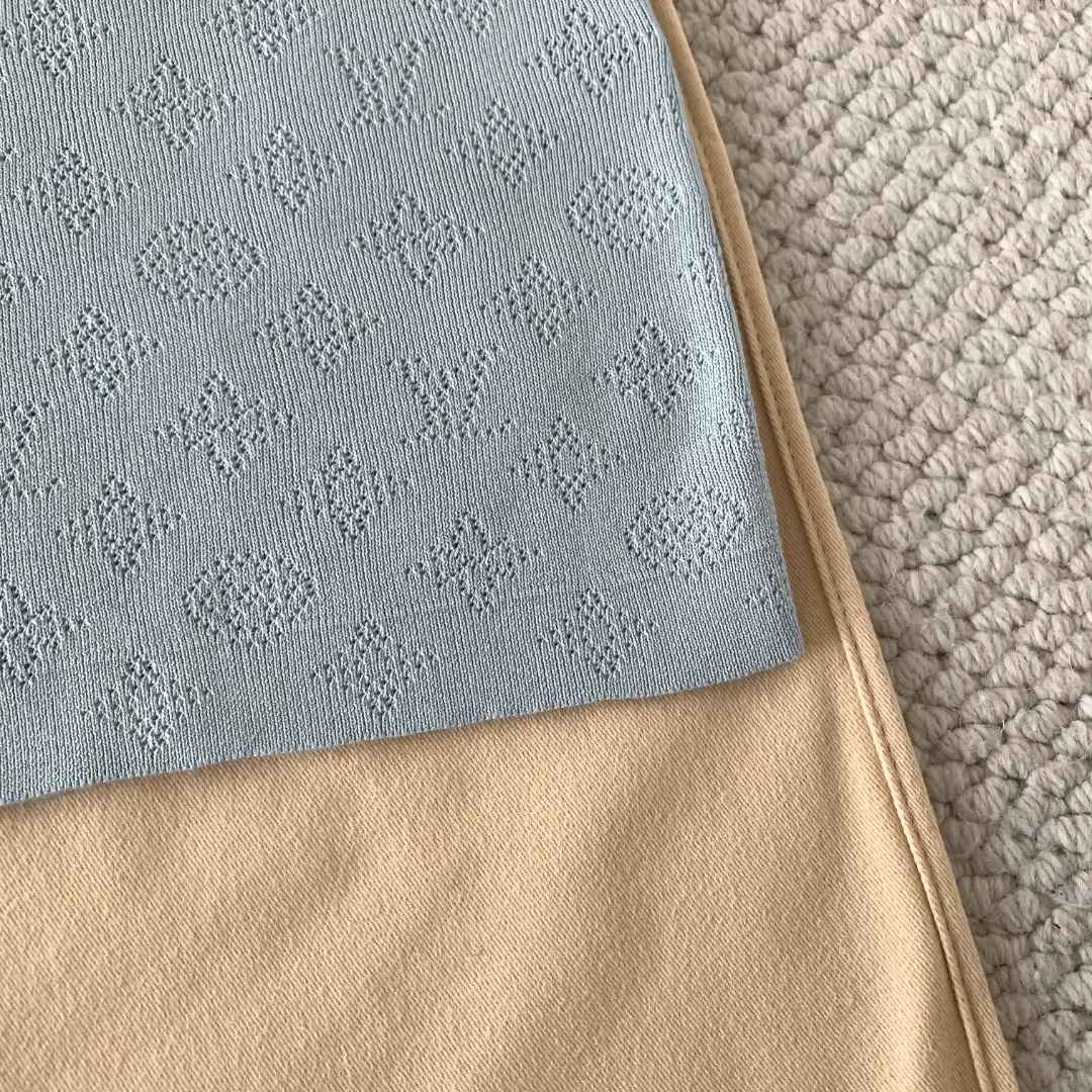 Áo polo cổ bẻ tay ngắn dệt kim rỗng LV SS26, thiết kế độc quyền 1-1. Sử dụng chất liệu vải dệt kim rỗng thoáng khí, tổng thể thể hiện họa tiết hình thoi tinh tế và họa tiết hoa Monogram màu tối, kết hợp giữa sự thoáng khí và chất liệu cao cấp. Màu xanh tím oải hương. Kích cỡ: S/M/L/XL