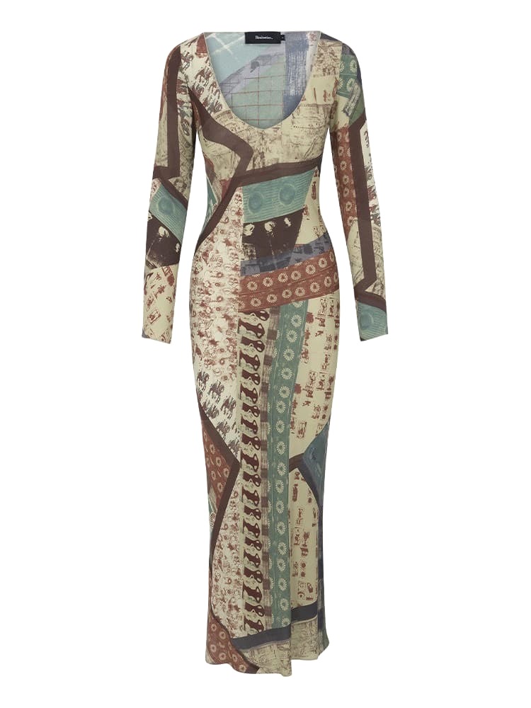 VÁY REALISATION V NECK WITH LONG SLEEVE LONG DRESS High Classy