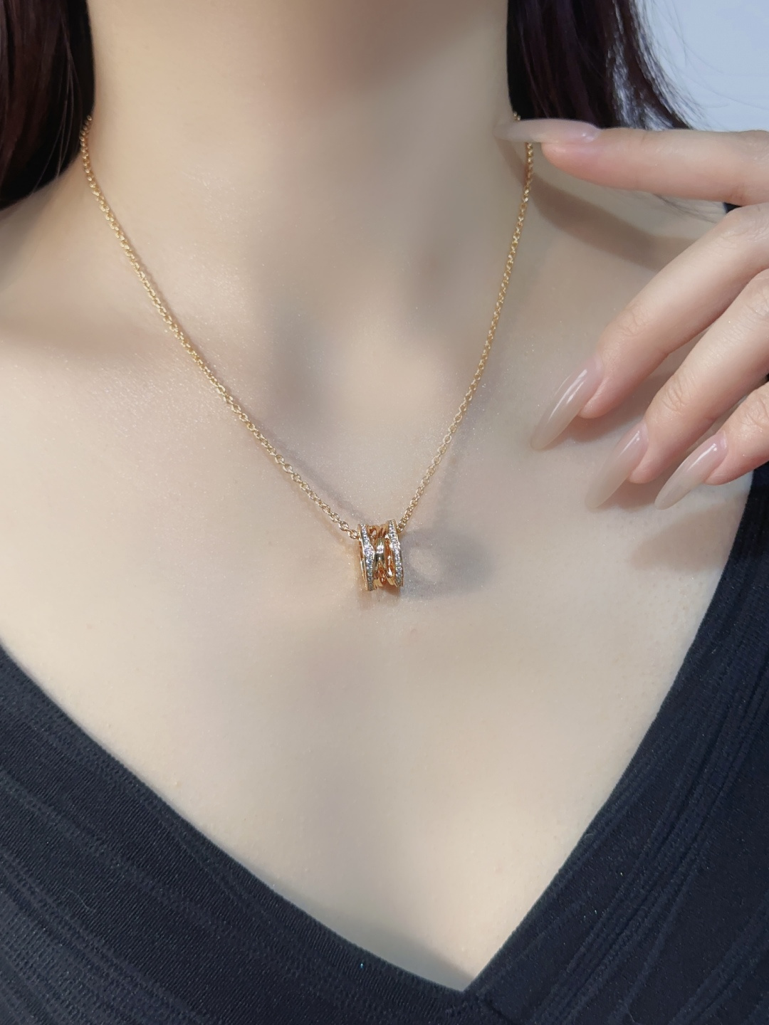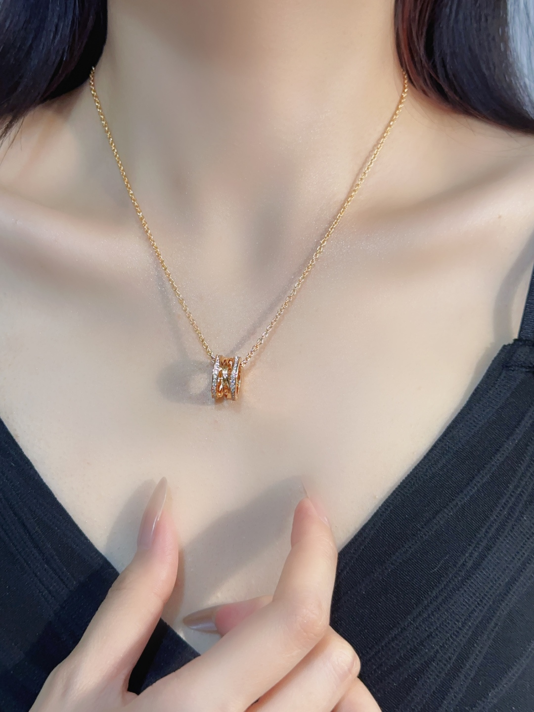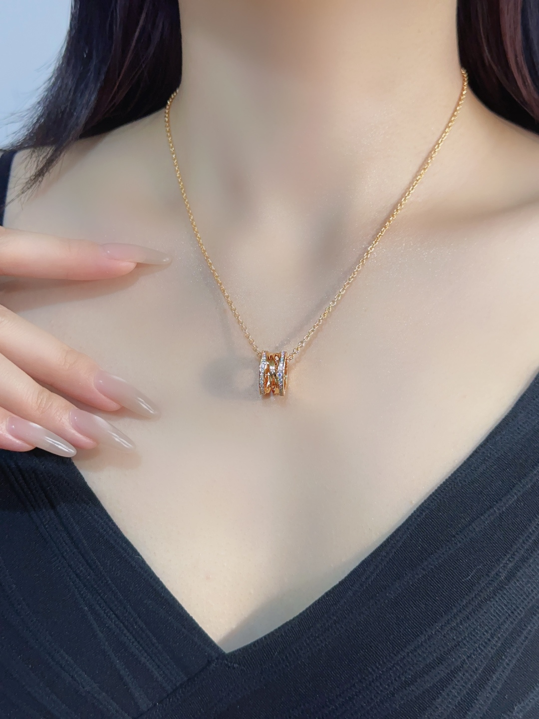 Dòng sản phẩm B.zero của Bvlgari với thiết kế mùa xuân đính kim cương kinh điển không cần giới thiệu nhiều. Thiết kế mùa xuân được yêu thích trên toàn thế giới toát lên vẻ quý phái và thanh lịch. Những viên kim cương được đính thủ công trên nắp bên hông tạo thêm điểm nhấn độc đáo. Có sẵn bằng vàng hồng và vàng trắng (BV5800195, BV5800225). Phiên bản cải tiến này của vòng cổ lò xo được chạm khắc chính xác bằng máy CNC, tạo nên vẻ ngoài xoắn ốc ba chiều vô cùng ấn tượng. Các lò xo chồng lên nhau hoàn hảo khi bóp! Bên trong cũng được làm nhẵn mịn và đánh bóng hoàn hảo – vô cùng tuyệt đẹp! Các viên kim cương trên mặt dây chuyền được đính thủ công để đảm bảo độ lấp lánh của từng viên kim cương và loại bỏ lo ngại về việc kim cương bị rơi ra. Độ dày lớp mạ điện đã được tăng lên,nâng cao tay nghề chế tác. Chất liệu vẫn là vàng V, kích thước mặt dây chuyền là 9*14mm, với chiều dài dây chuyền từ 38,5–46,5cm, hoàn toàn đúng với thông số kỹ thuật ban đầu.