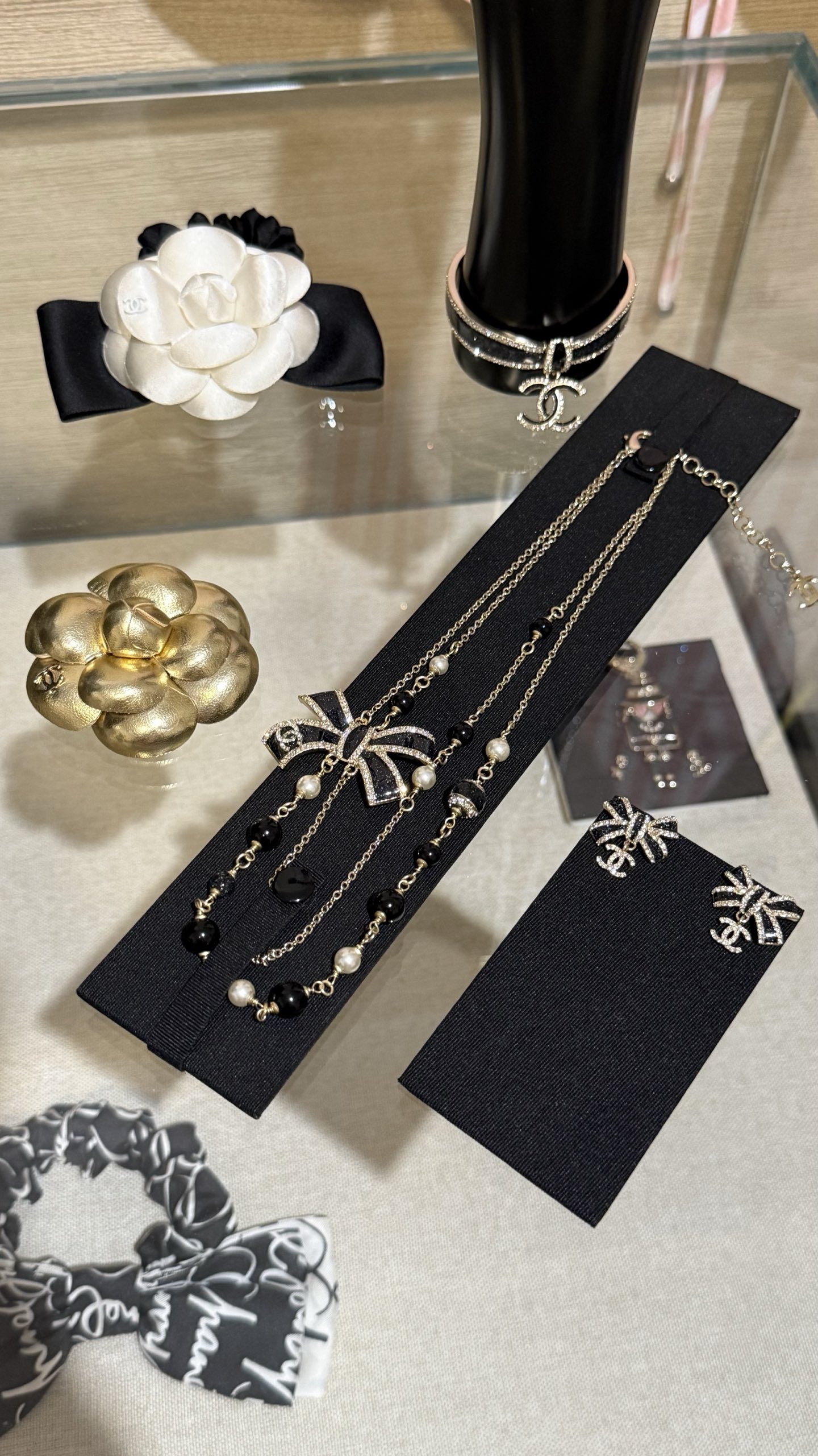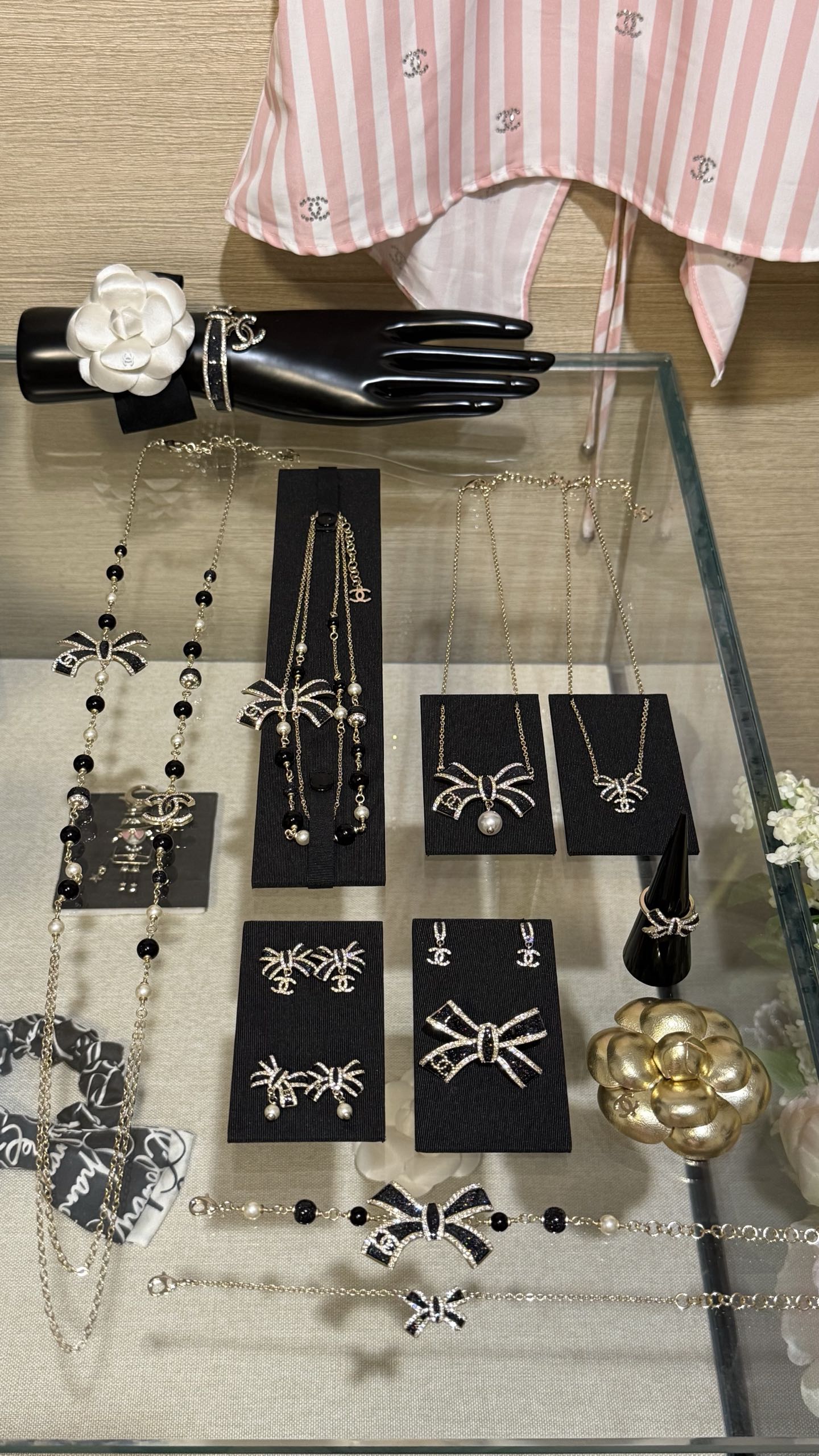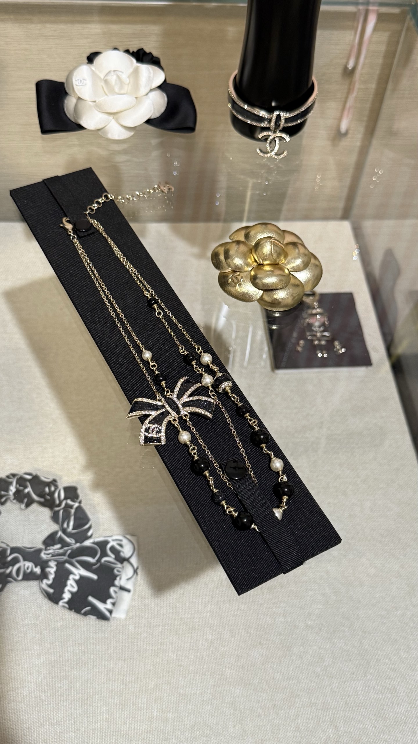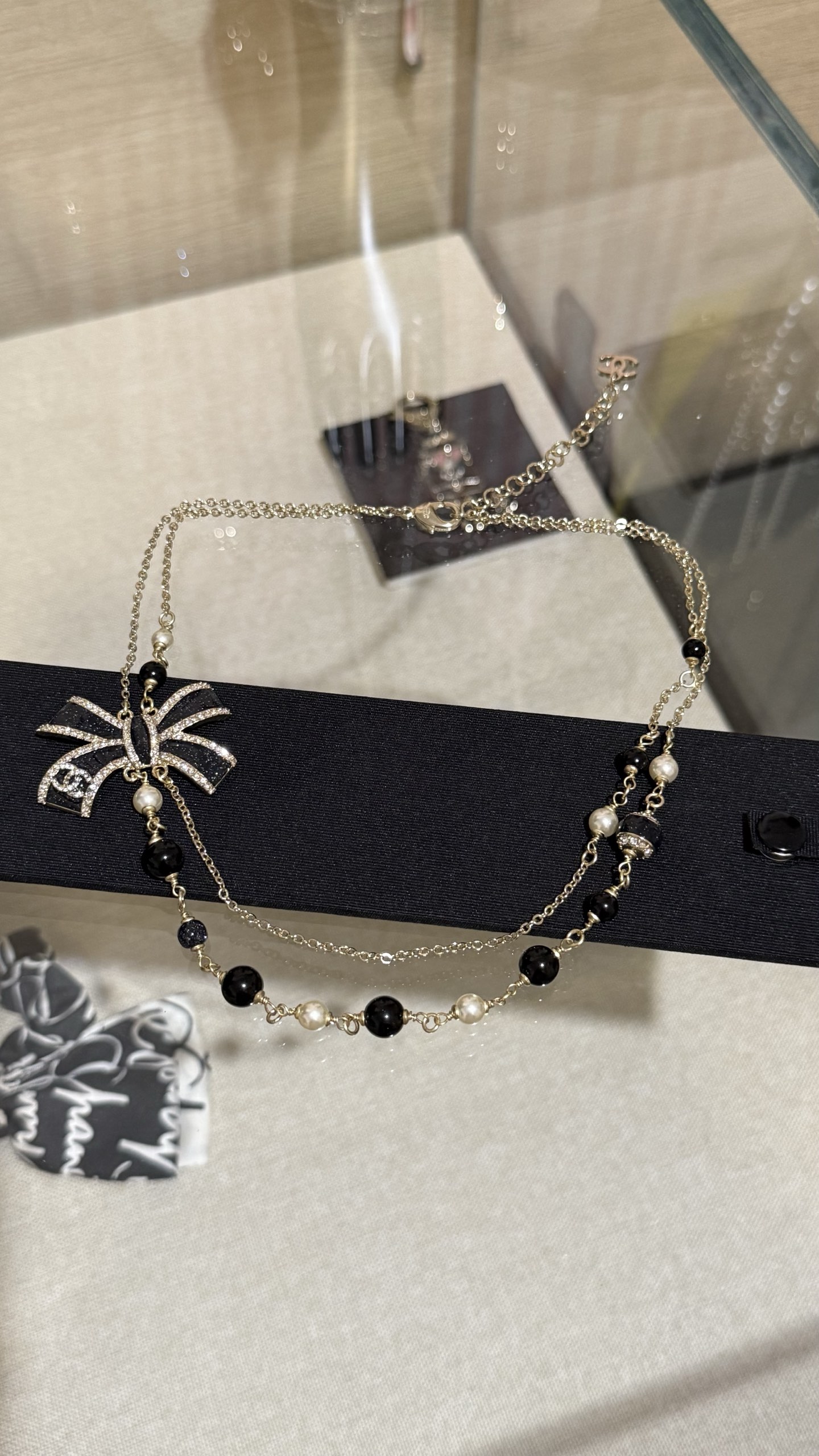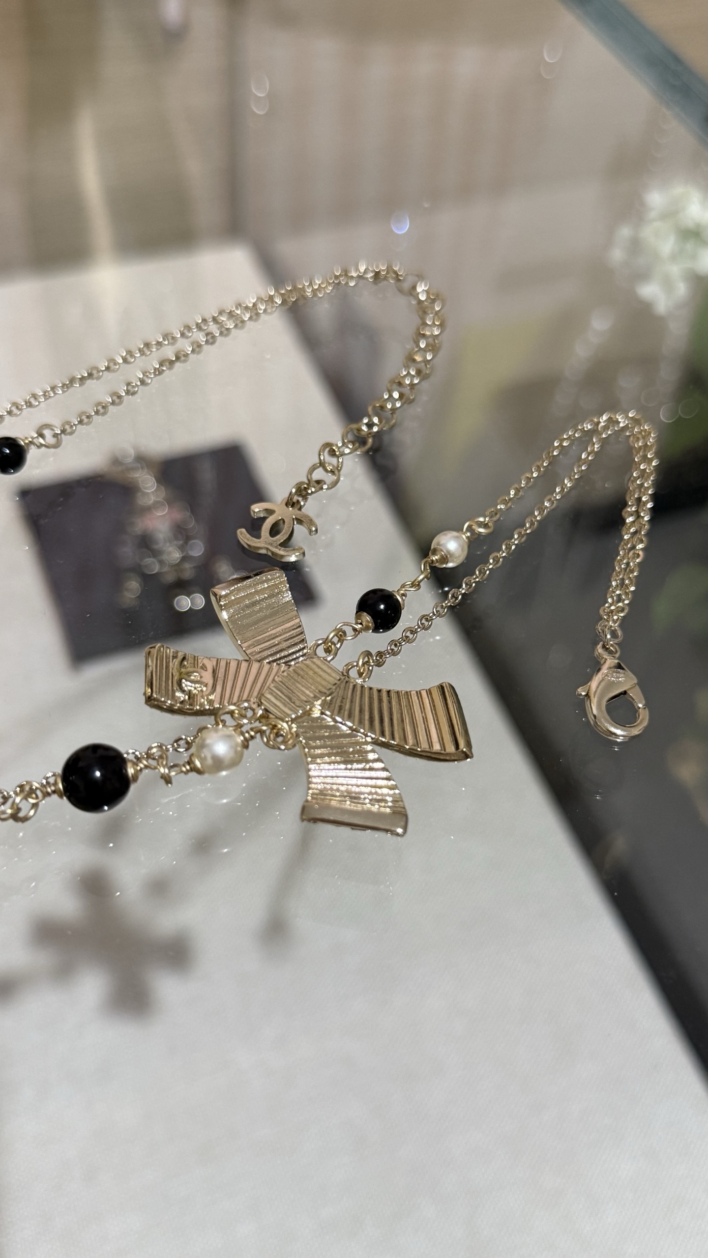 DÂY CHUYỀN CHANEL 25B NƠ VÀNG ĐEN ORNAMENT.DÂY CHUYỀN Chanel 25B nơ vàng đen tráng men, đính kim cương, logo chữ C kép và ngọc trai thủy tinh Nơ vàng đen với những chi tiết lấp lánh tinh tế và được tô điểm bằng ngọc trai thủy tinh, ngọt ngào và thanh lịch, nhưng vẫn toát lên vẻ sang trọng. Phù hợp với trang phục hàng ngày hoặc buổi hẹn hò trà chiều, mang đến cảm giác giàu có và xa hoa.