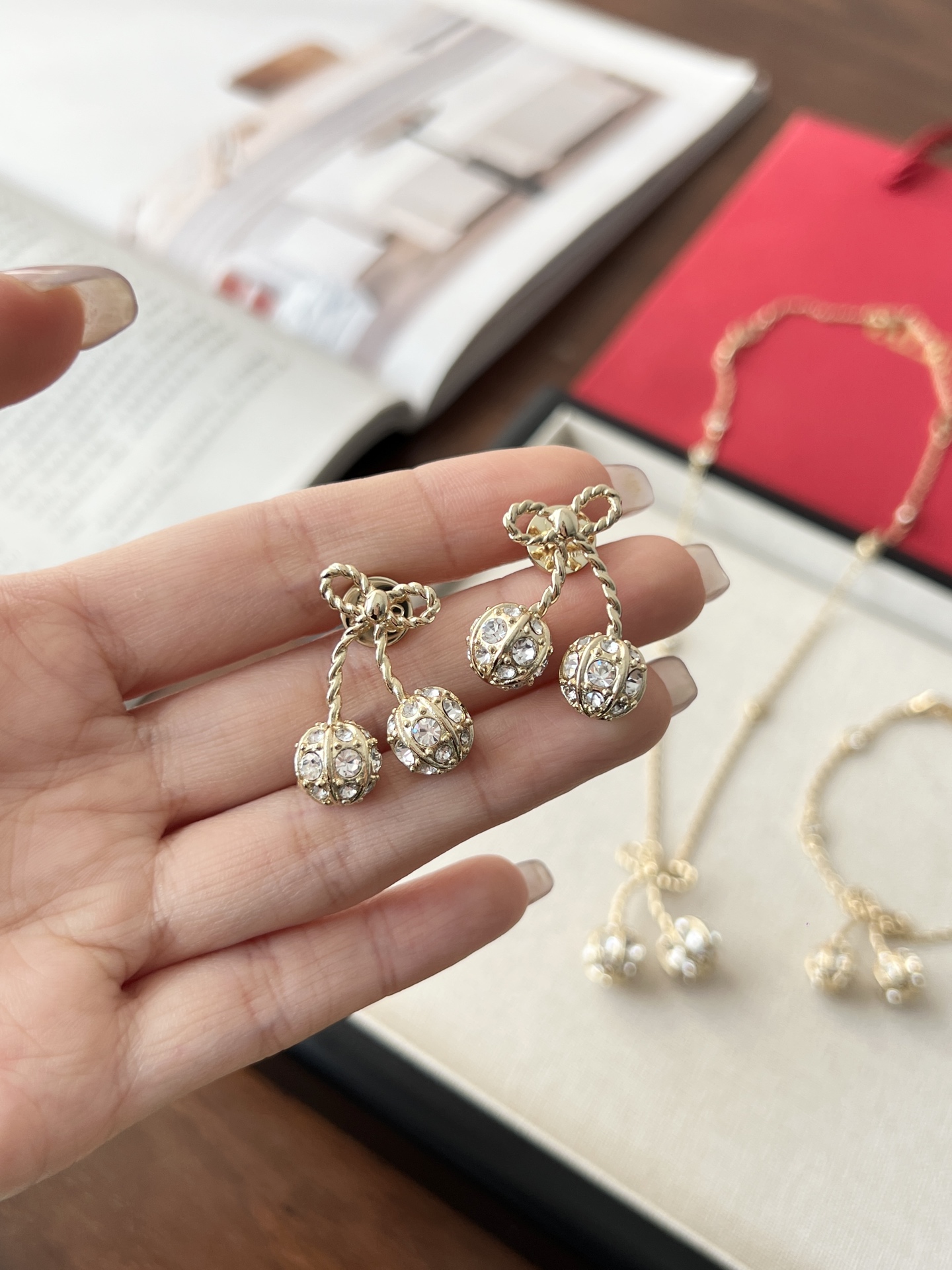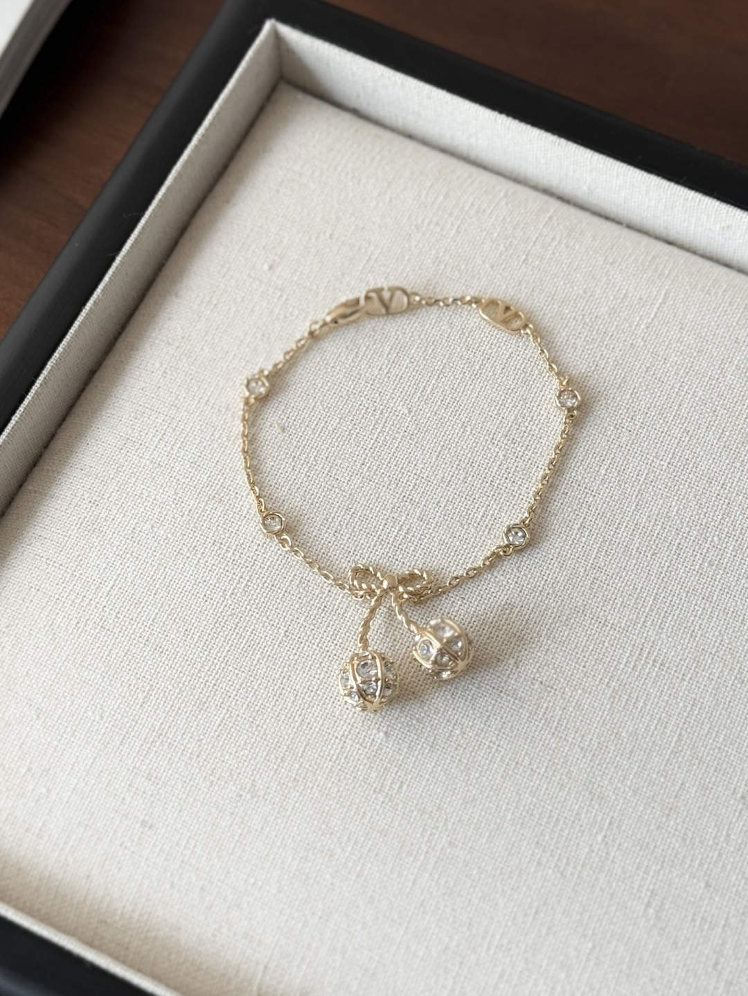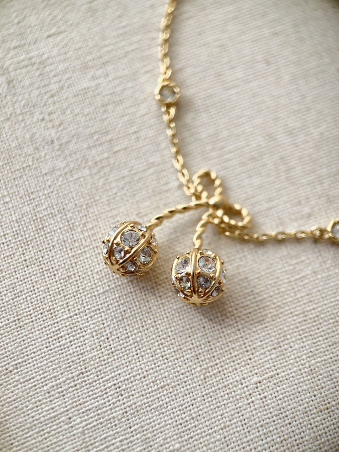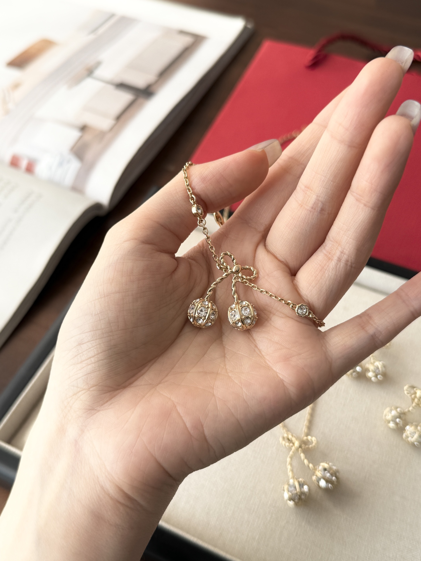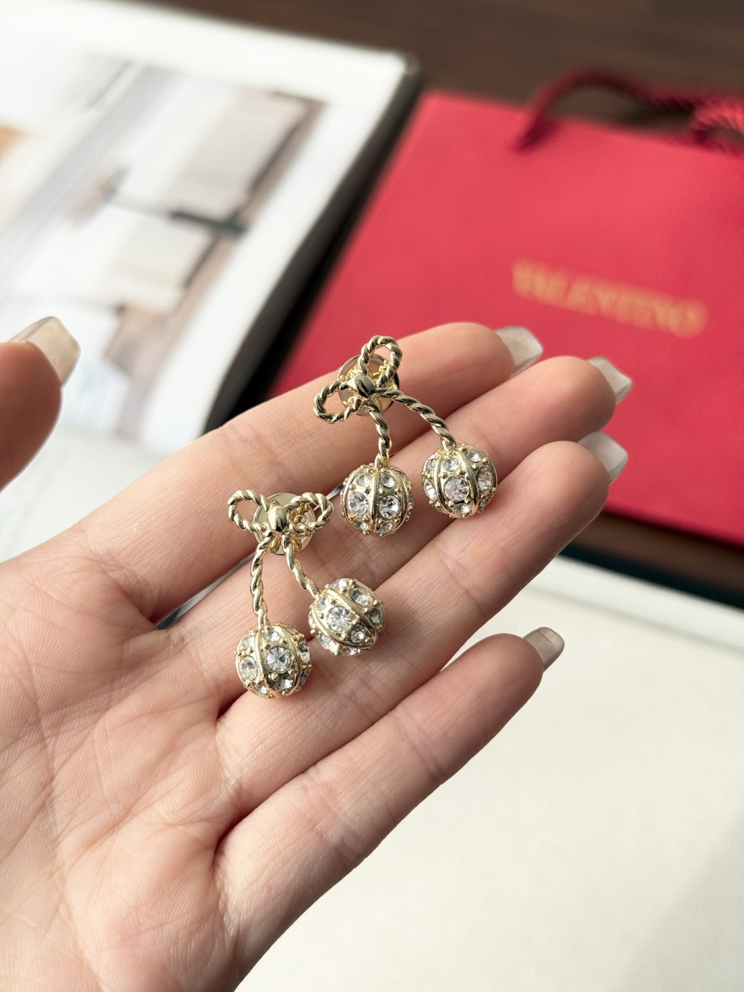 Thiết kế hoa anh đào vàng của Valentino nhỏ nhắn và tinh tế, được đính những viên kim cương pha lê Swarovski lấp lánh trải khắp thân vòng. Chất liệu vải xù 360 độ phản chiếu ánh sáng rực rỡ, khiến nó trở nên lấp lánh và đáng yêu! Con bướm thắt nút vàng tạo nên bầu không khí ngọt ngào và tinh nghịch với một chút lãng mạn, toát lên khí chất của một tiểu thư giàu có. Các nàng tiên nhỏ nhất định không thể bỏ lỡ! Màu vàng trắng làm sáng da và toát lên vẻ sang trọng ngay từ cái nhìn đầu tiên. Hoàn hảo cho bất kỳ khoảnh khắc nào bạn muốn thêm một chút lãng mạn và tinh tế vào trang phục của mình. Đây là một món đồ trang sức hàng ngày không cần suy nghĩ, toát lên vẻ quyến rũ và thanh lịch mỗi khi bạn ra ngoài! Phần kim loại được làm bằng đồng thau mạ vàng dày, bề mặt tinh xảo và hiệu ứng mạ điện đạt đến mức tối đa. Nó mang một vẻ quý phái và sang trọng, cũng như có đặc tính chống oxy hóa và chống ăn mòn, giúp giảm nguy cơ dị ứng khi đeo! Chiều dài vòng tay: 17cm Chiều dài dây chuyền: 40cm Dây nối dài: 13cm Kích thước bông tai: 2.5cm