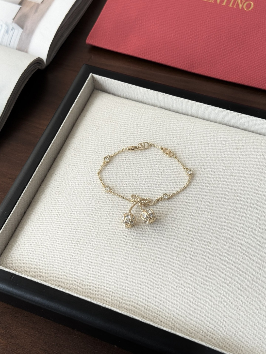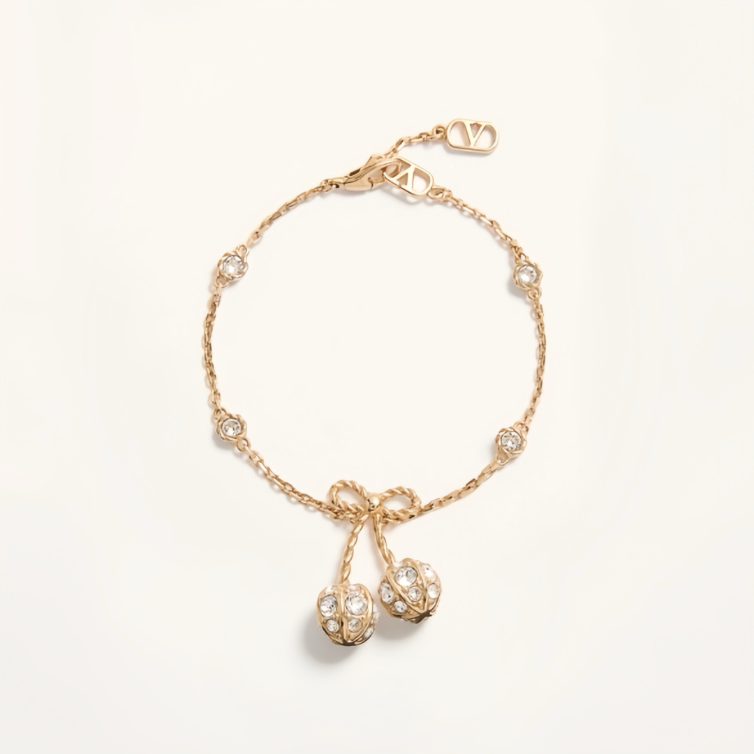 THÔNG SỐ SẢN PHẨM Thiết kế hoa anh đào vàng của Valentino nhỏ nhắn và tinh tế, được đính những viên kim cương pha lê Swarovski lấp lánh trải khắp thân vòng. Chất liệu vải xù 360 độ phản chiếu ánh sáng rực rỡ, khiến nó trở nên lấp lánh và...
