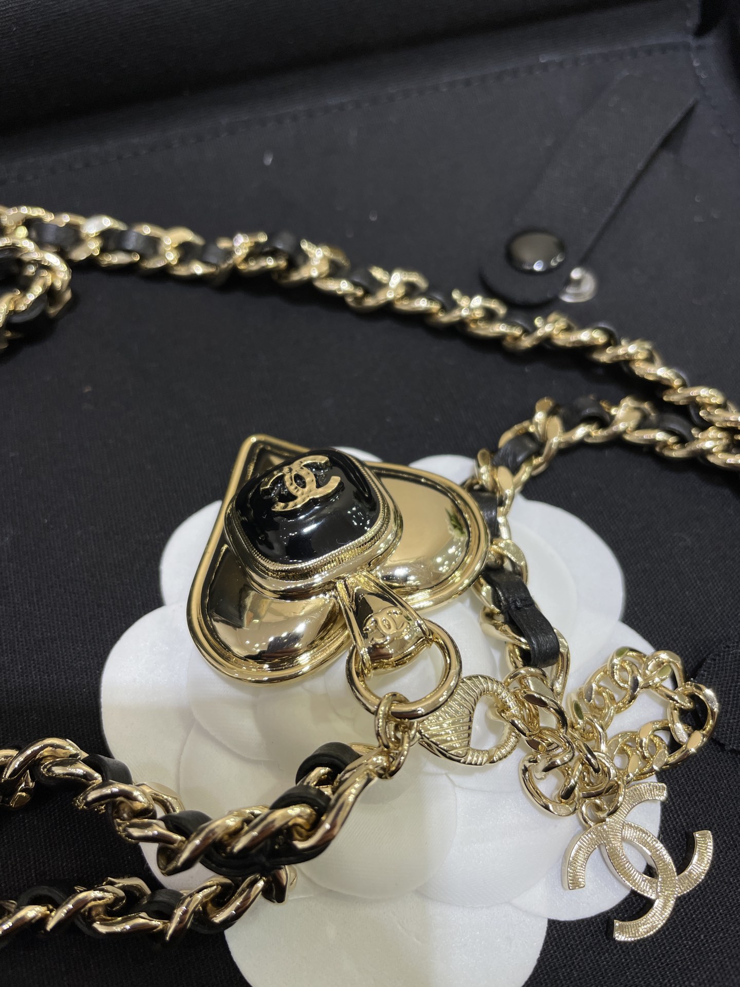 THÔNG SỐ SẢN PHẨM TRANG WEB CHÍNH THỨC CỦA CHANEL ĐANG BÀY BÁN Màu đen vàng cổ điển cỡ lớn Dây đeo eo da cừu hình trái tim đào Mua theo yêu cầu. Da cừu mạ vàng đồng thau với lớp men đen ở giữa. Có thể đeo cả hai mặt, tay...