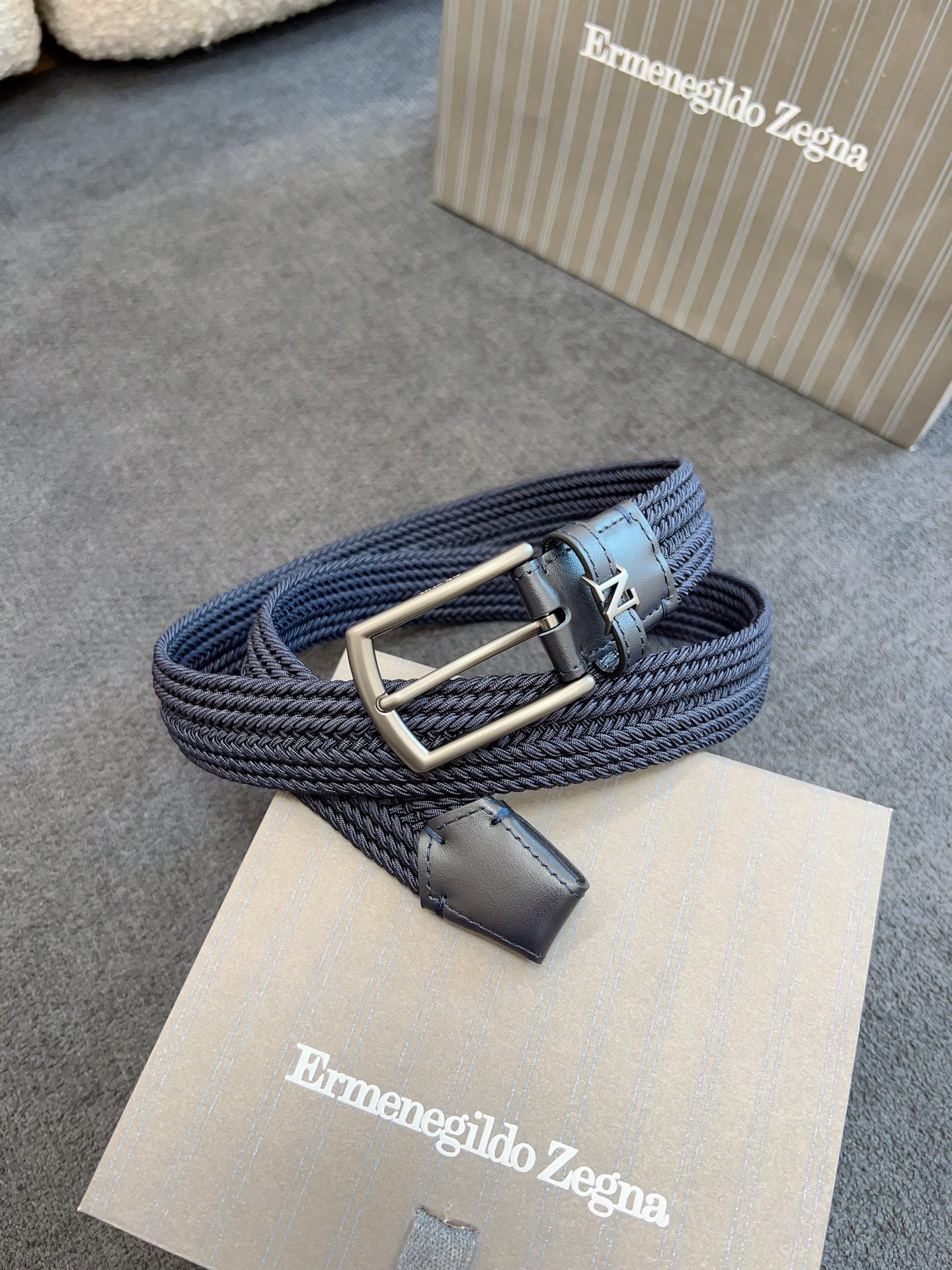 Thắt lưng Zegna dệt kim co giãn bằng rayon, kiểu dáng nam, rộng 3.5cm, phiên bản mua hàng.