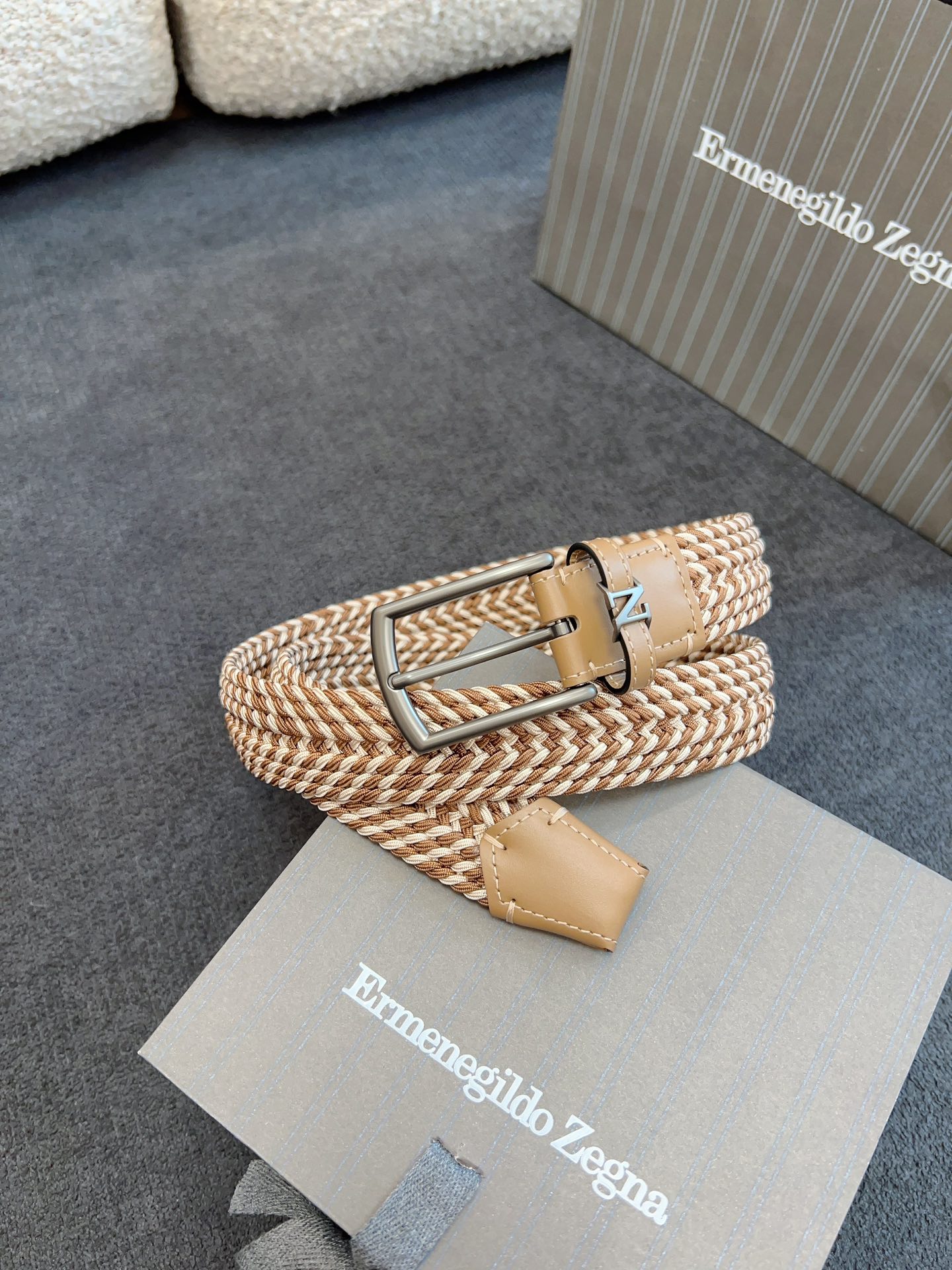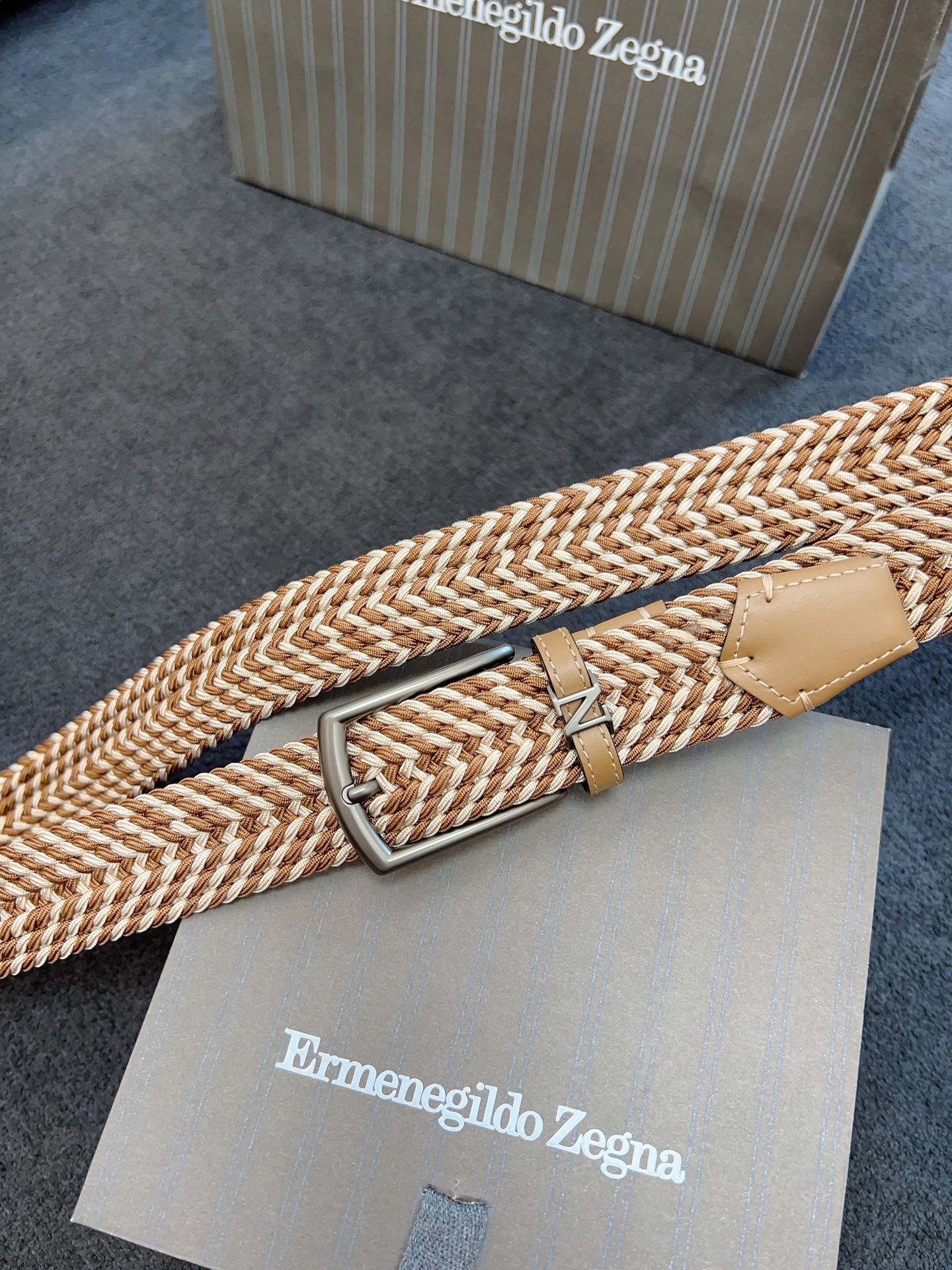 Thắt lưng Zegna dệt kim co giãn bằng rayon, kiểu dáng nam, rộng 3.5cm, phiên bản mua hàng.