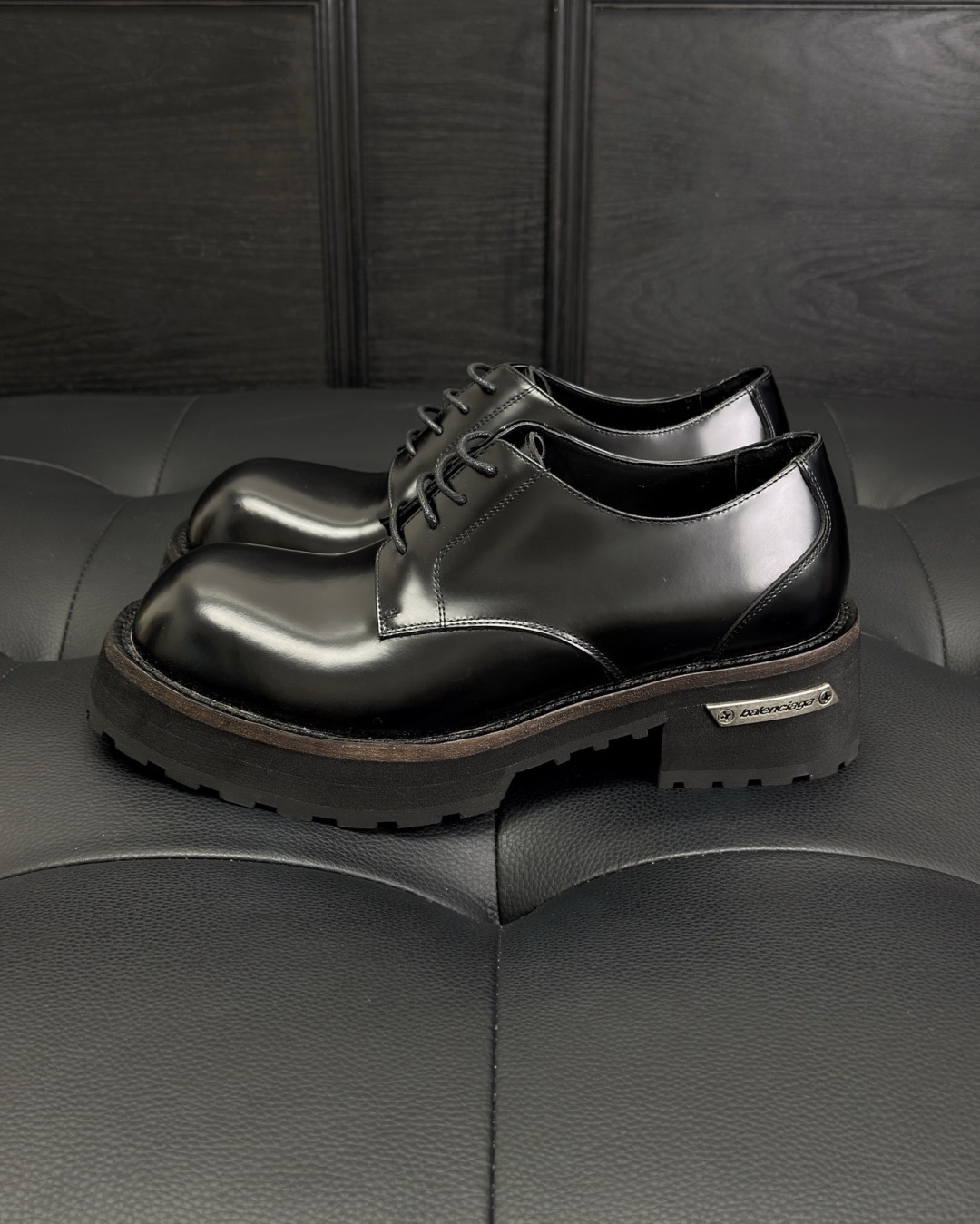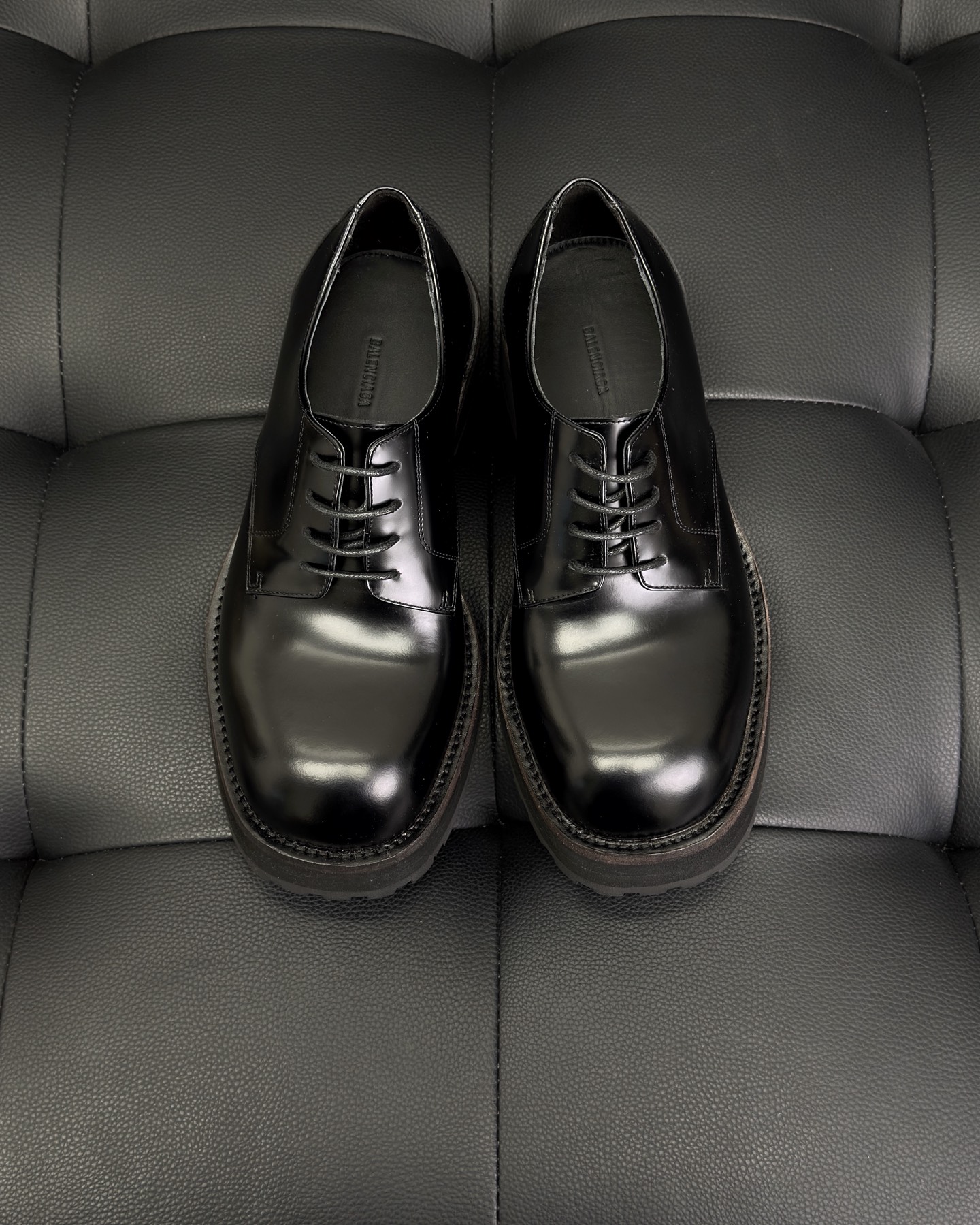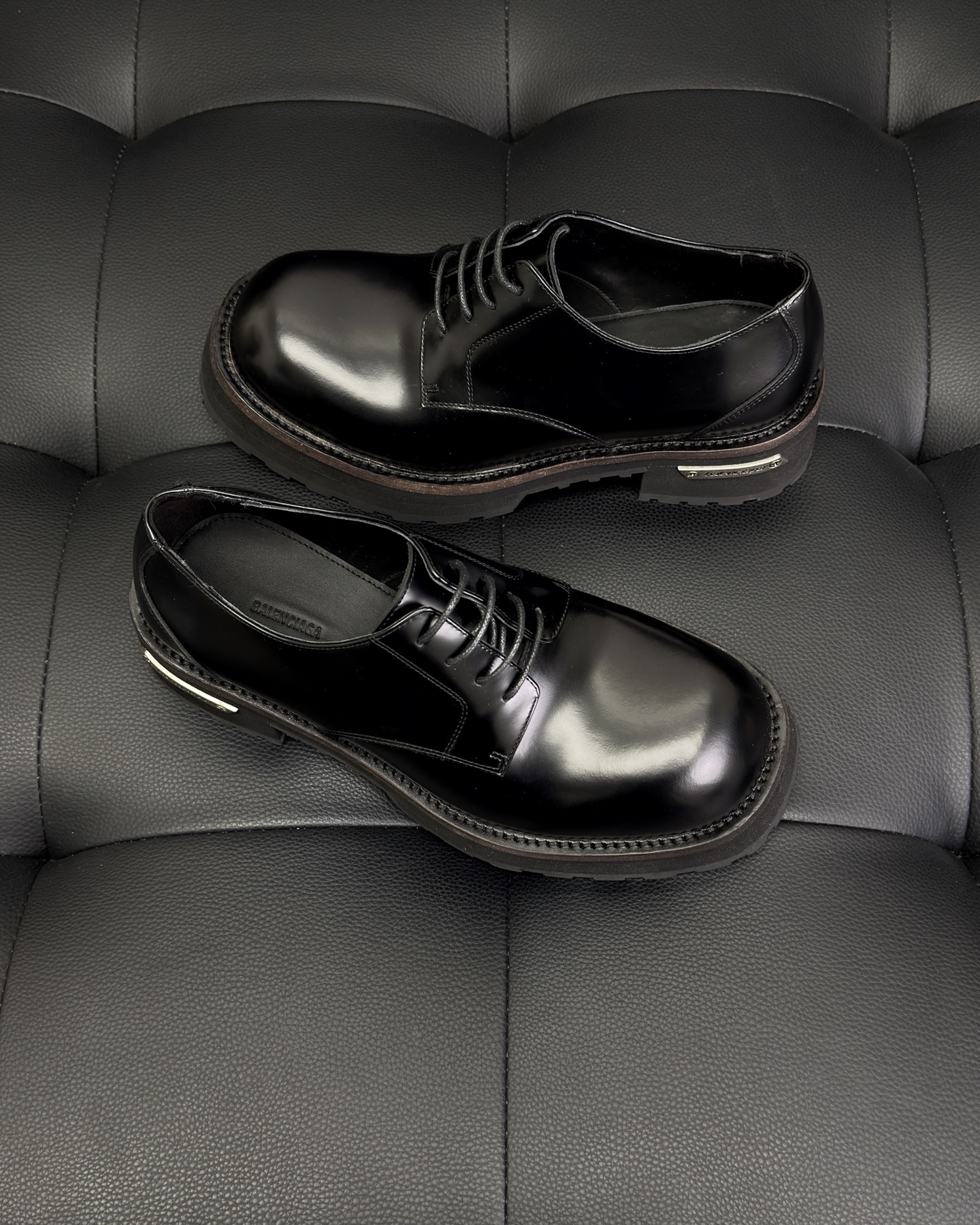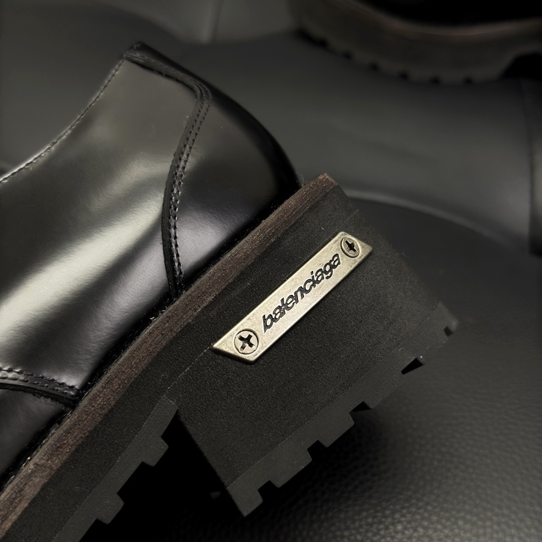 Giày Derby nam Balenciaga VENOM. Mũi giày tròn lớn 20mm với 4 lỗ xỏ dây và kiểu buộc dây. Mặt ngoài đế giày được trang trí bằng một tấm bảng tên cổ điển khắc logo Balenciaga. Đế màu đen. Kích cỡ: 39 40 41 42 43 44 45 46.