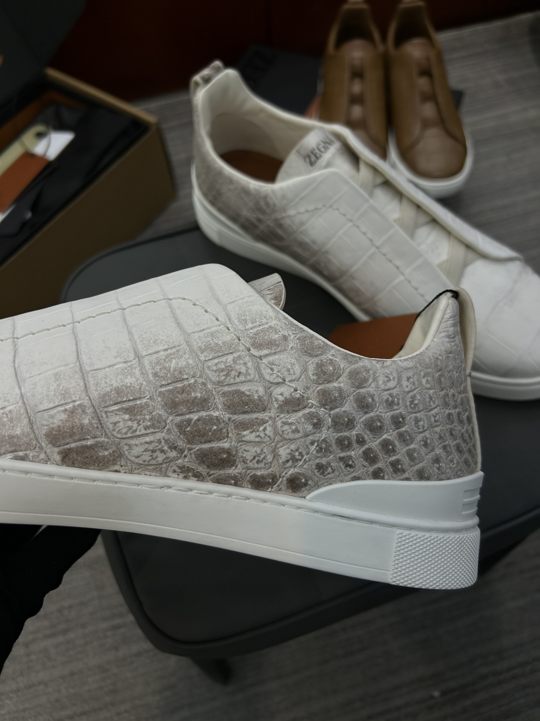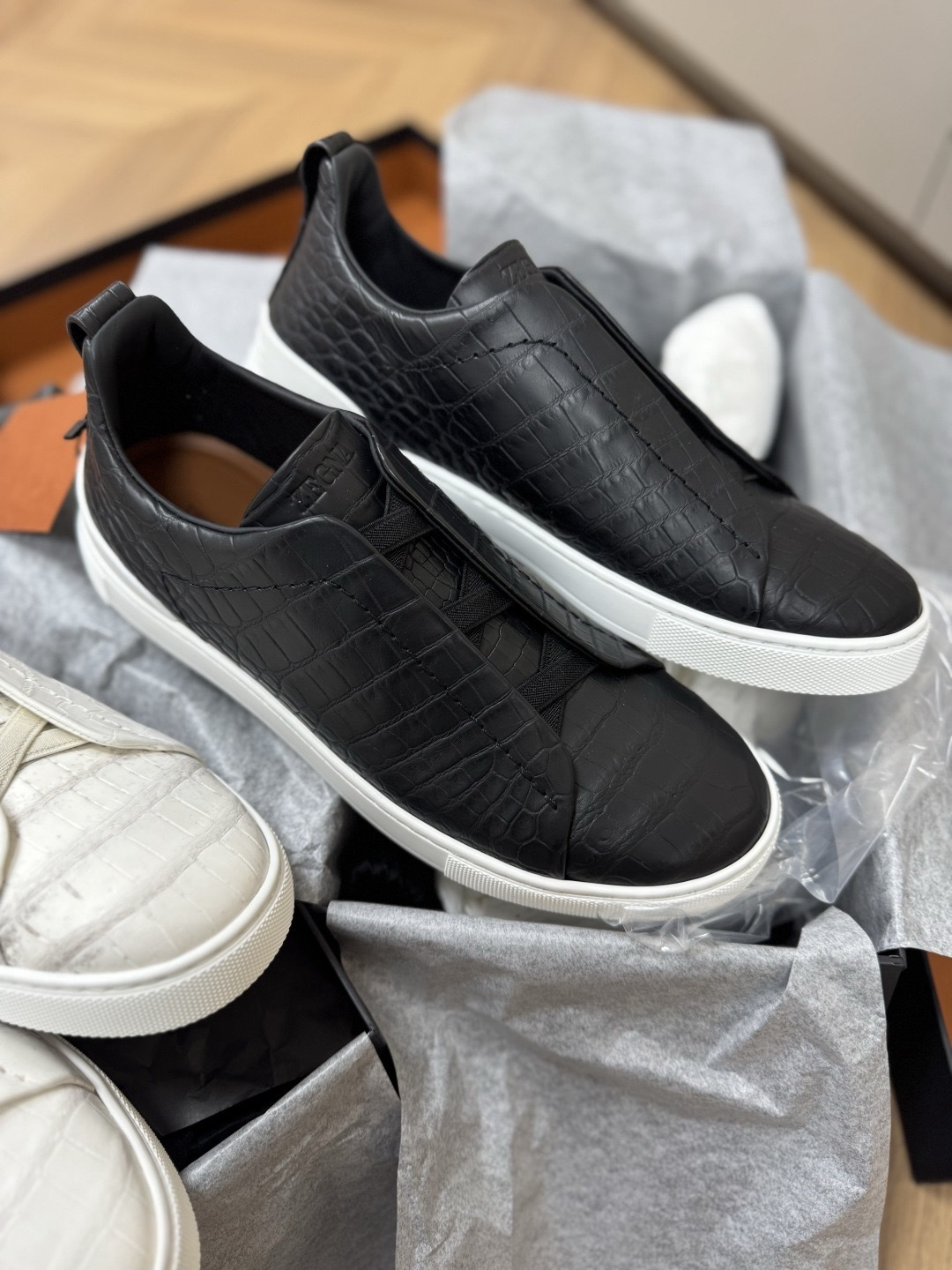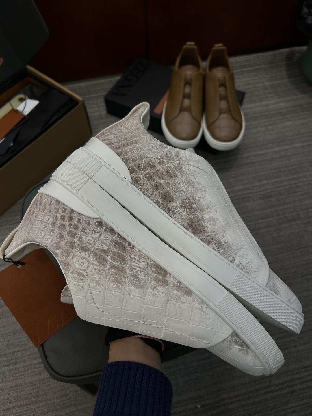 THÔNG SỐ SẢN PHẨM Trang web chính thức của ERMENEGILDO ZEGNA đang bán Hàng cao cấp (Da cá sấu cao cấp, làm thủ công theo yêu cầu) Kích cỡ: 39, 40, 41, 42, 43, 44, 45, 46 Giày nam công sở cao cấp Zegna TS-SECONDSKIN HÀNG HÓA NHÀ MÁY GIA CÔNG THEO ĐƠN...