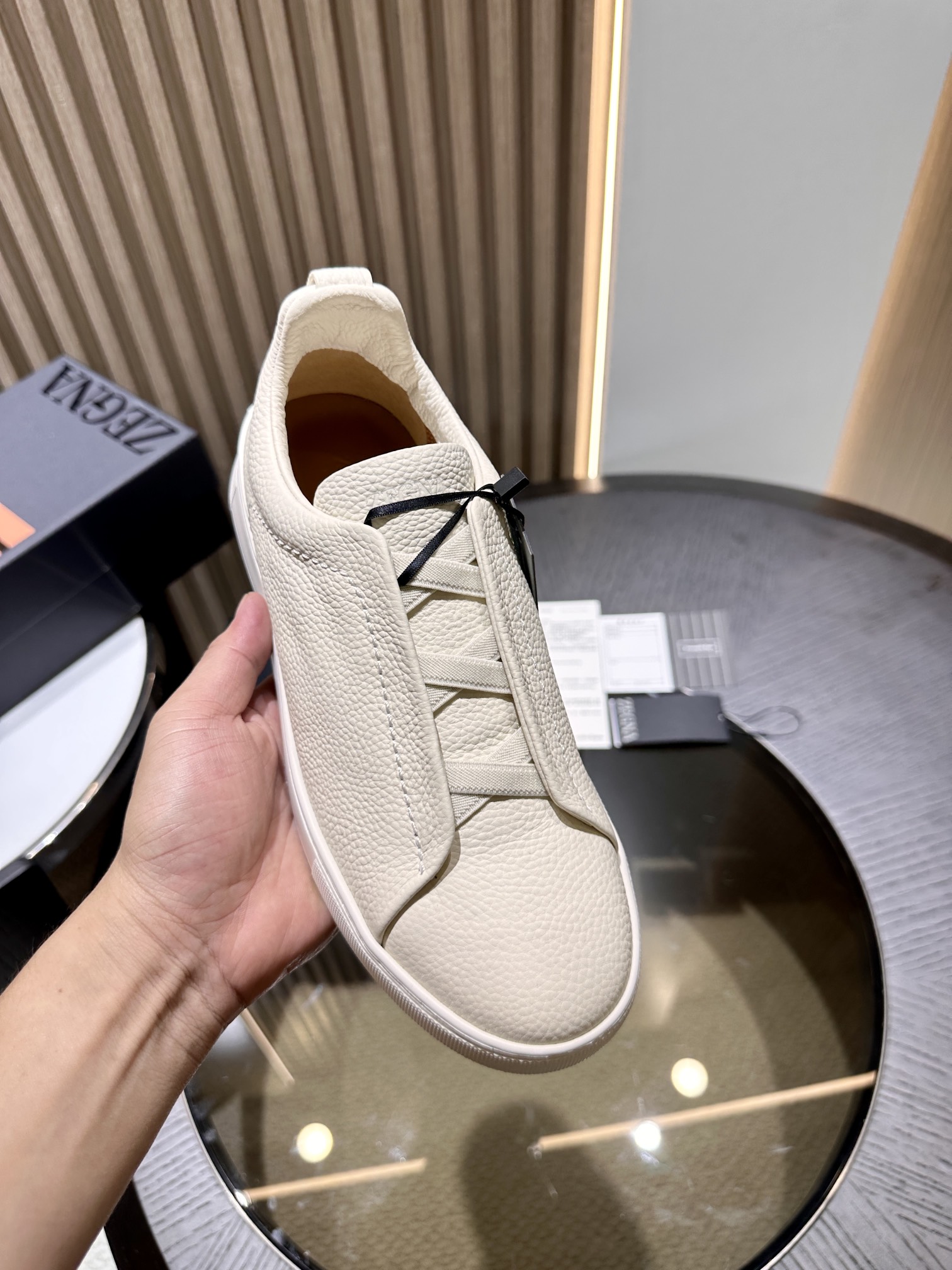 Giày thể thao cổ thấp Triple Stitch™ của Ermenegildo Zegna, được đồng bộ hóa với trang web chính thức, được làm từ da hươu mang đến phong cách tinh tế cho giày dép thường ngày. Chi tiết dây thun ba đường chéo đặc trưng thể hiện đường khâu thủ công truyền thống của giày da, với thiết kế nhẹ nhàng và thoải mái, hoàn toàn phù hợp với lối sống năng động. Kích cỡ 39-45 (46 đặt may riêng). Bao bì chính hãng, kèm túi đựng giày.