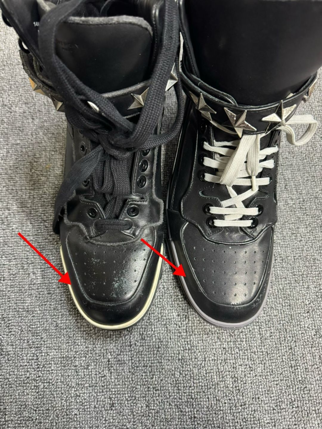Giày Givenchy Star, size 1.15, mở bán trước. Kích cỡ 41-44. Giao hàng theo đợt (theo thứ tự đặt hàng). Đợt đầu tiên có giá 250 USD, giá sẽ tăng lên 350 USD trong tương lai. Vì cuối năm đến gần và công đoạn chế tác giày trở nên phức tạp hơn, chúng tôi đã tăng giá thành đơn vị công nhân lên 120 USD/đôi. Hai nhóm công nhân đang túc trực để phục vụ đợt giày đầu tiên trong năm mới. Chúc mọi người một năm mới vui vẻ và chúng tôi sẽ tiếp tục giao hàng đợt thứ hai sau Tết Nguyên đán