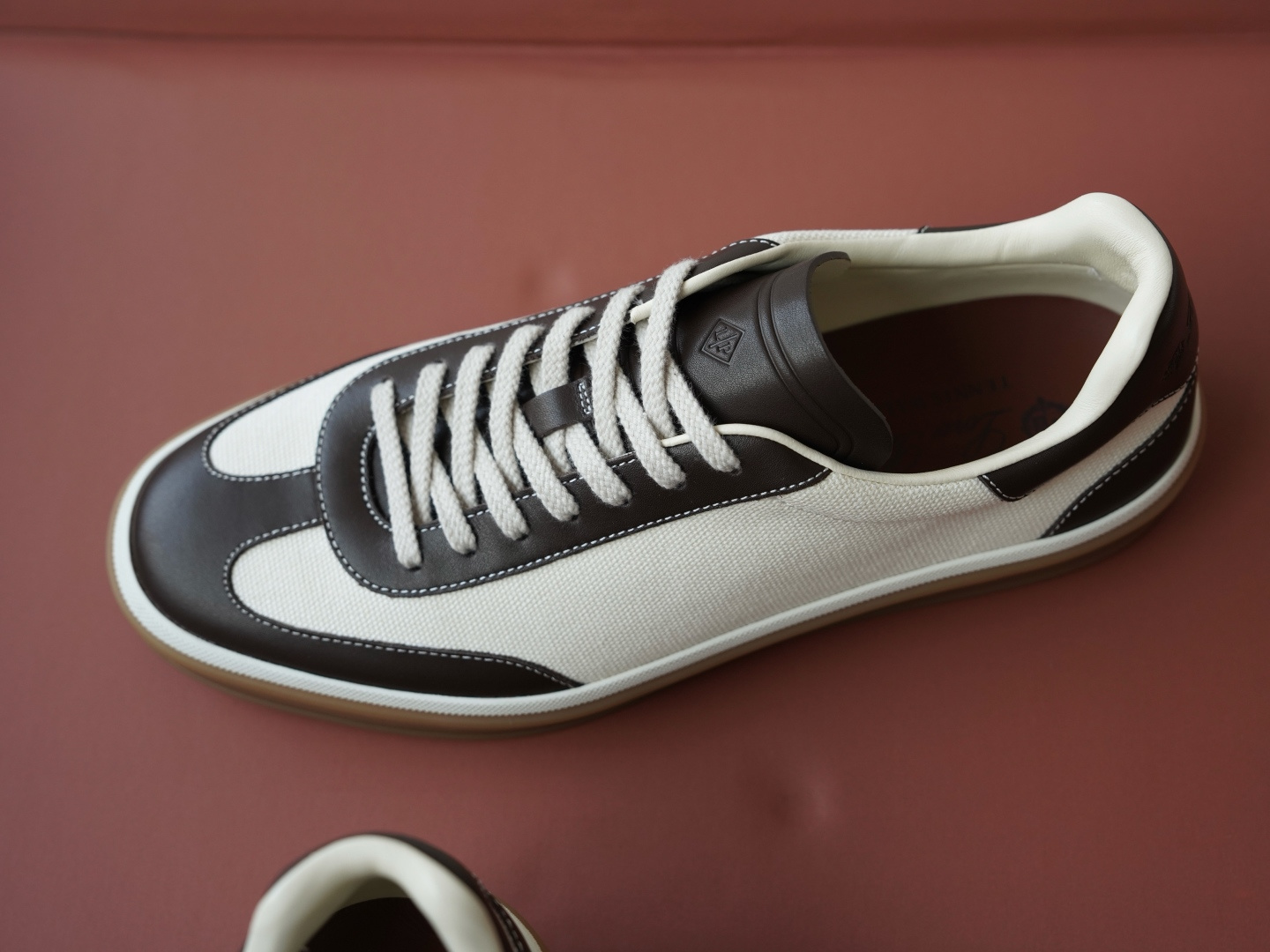 Giày thể thao cổ thấp buộc dây mũi tròn bằng da kiểu dáng unisex. Quá trình phát triển dữ liệu thiết kế giày ban đầu mất vài tháng. Phần trên của giày được làm từ da lộn bò nhập khẩu thân thiện với môi trường, lớp lót bằng da bò và đế ngoài bằng da bò được làm từ khuôn đúc nguyên bản kết hợp với nguyên liệu cao su thô. Bạn đang sở hữu trọn bộ bao bì gốc