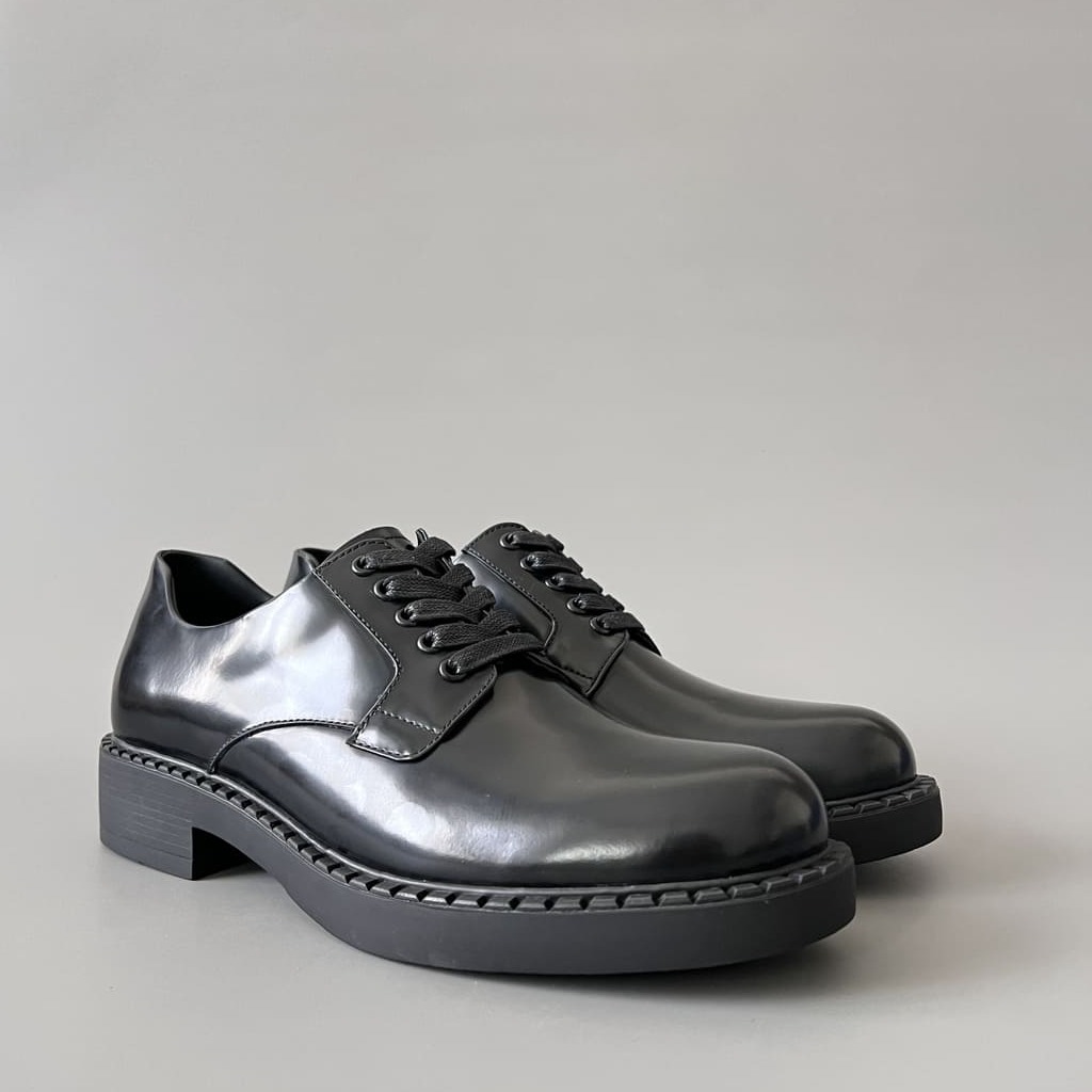 Giày da bóng PRADA màu đen.Phát triển ban đầu hình dạng cuối cùng phục hồi