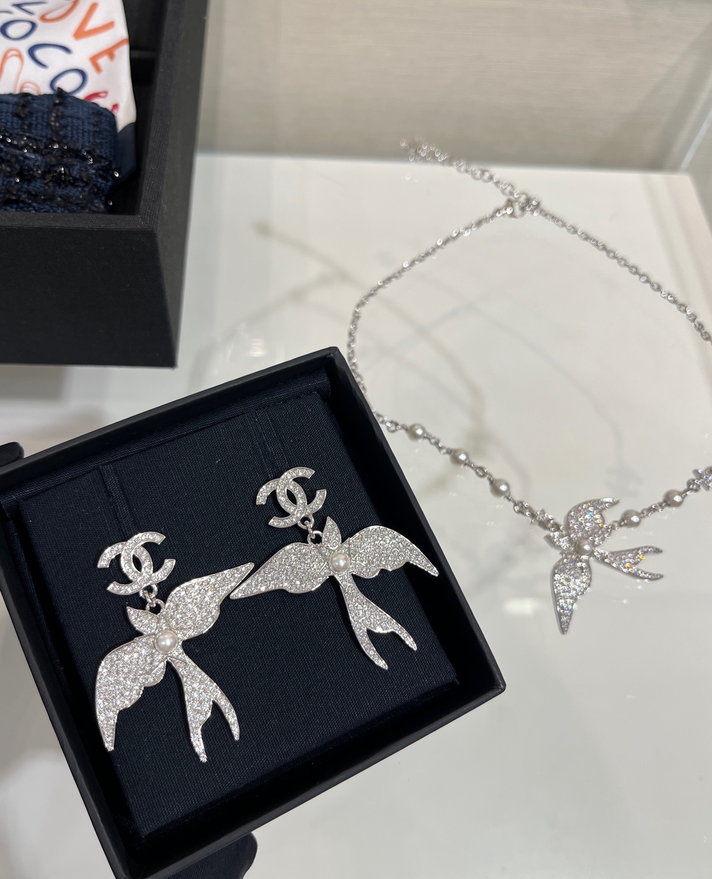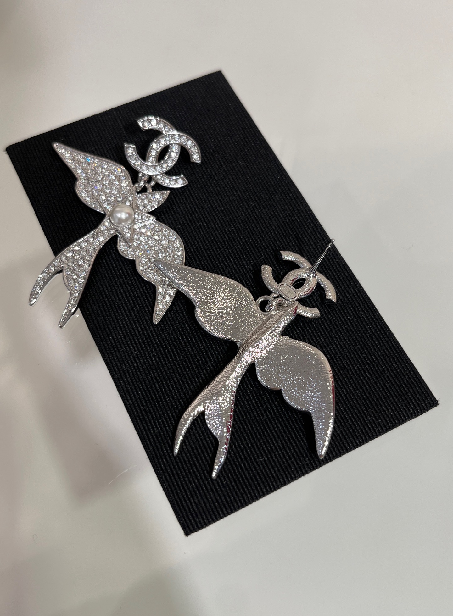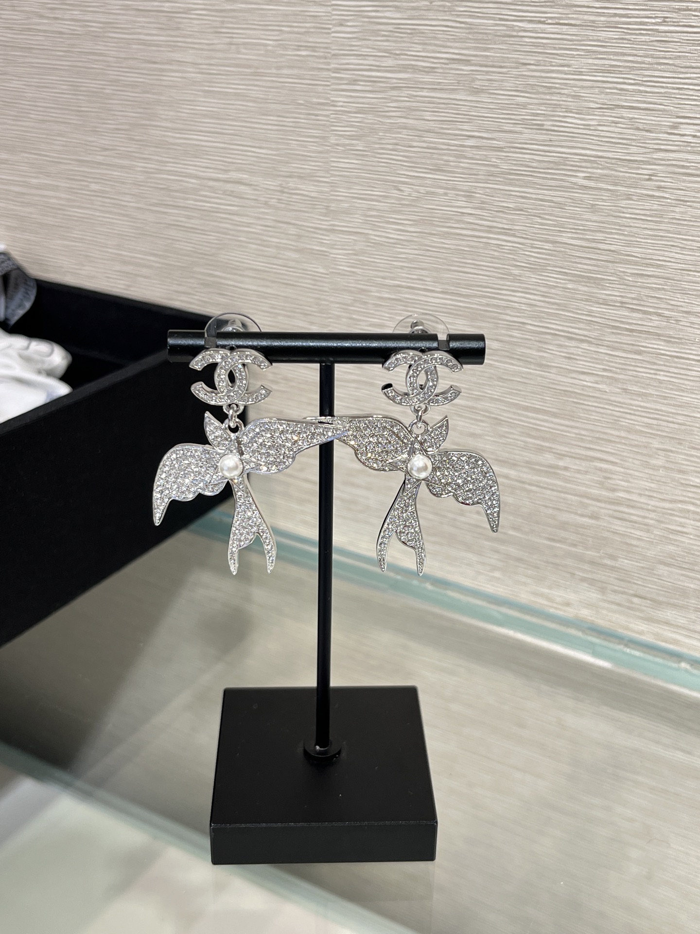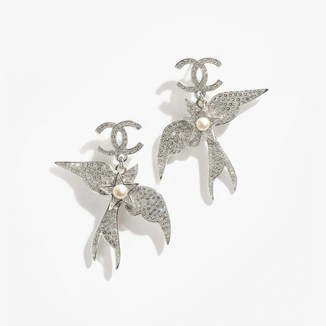 Khuyên tai Chanel 25s Bạc đính kim cương toàn bộ hình chim Double C mới. Thiết kế khéo léo kết hợp các yếu tố chim tự nhiên. Rất giống trang sức 💎 Bất ngờ trong mùa khuyên tai này ‼ ️Kích thước lớn, cực kỳ bắt mắt, mang lại cảm giác sang trọng và quý phái. Chất liệu đồng thau giống như Yb ➕ Pha lê tùy chỉnh. Khuyên tai kèm hộp đựng, phiên bản cao cấp.