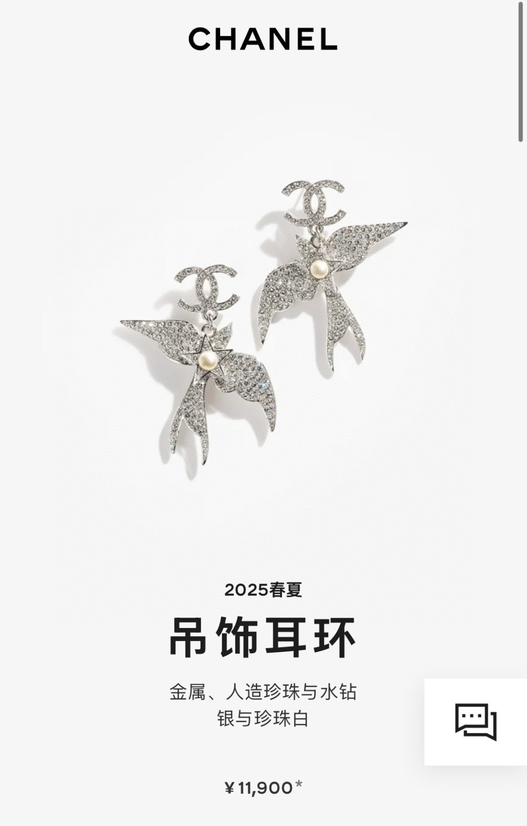 THÔNG SỐ SẢN PHẨM Khuyên tai Chanel 25s Bạc đính kim cương toàn bộ hình chim Double C mới. Thiết kế khéo léo kết hợp các yếu tố chim tự nhiên. Rất giống trang sức 💎 Bất ngờ trong mùa khuyên tai này ‼ ️Kích thước lớn, cực kỳ bắt mắt,...