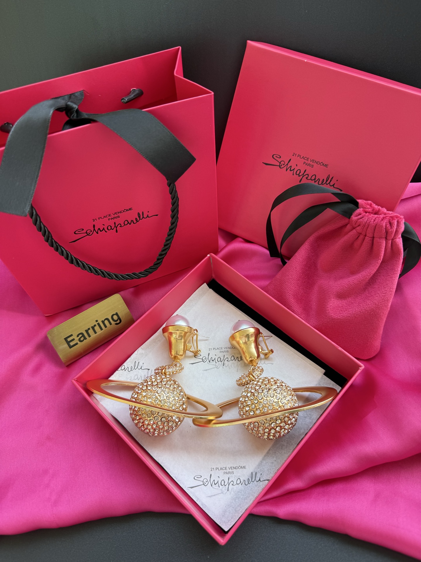 HOA TAI SCHIAPARELLI PARIS HÌNH QUẢ ĐỊA CẦU