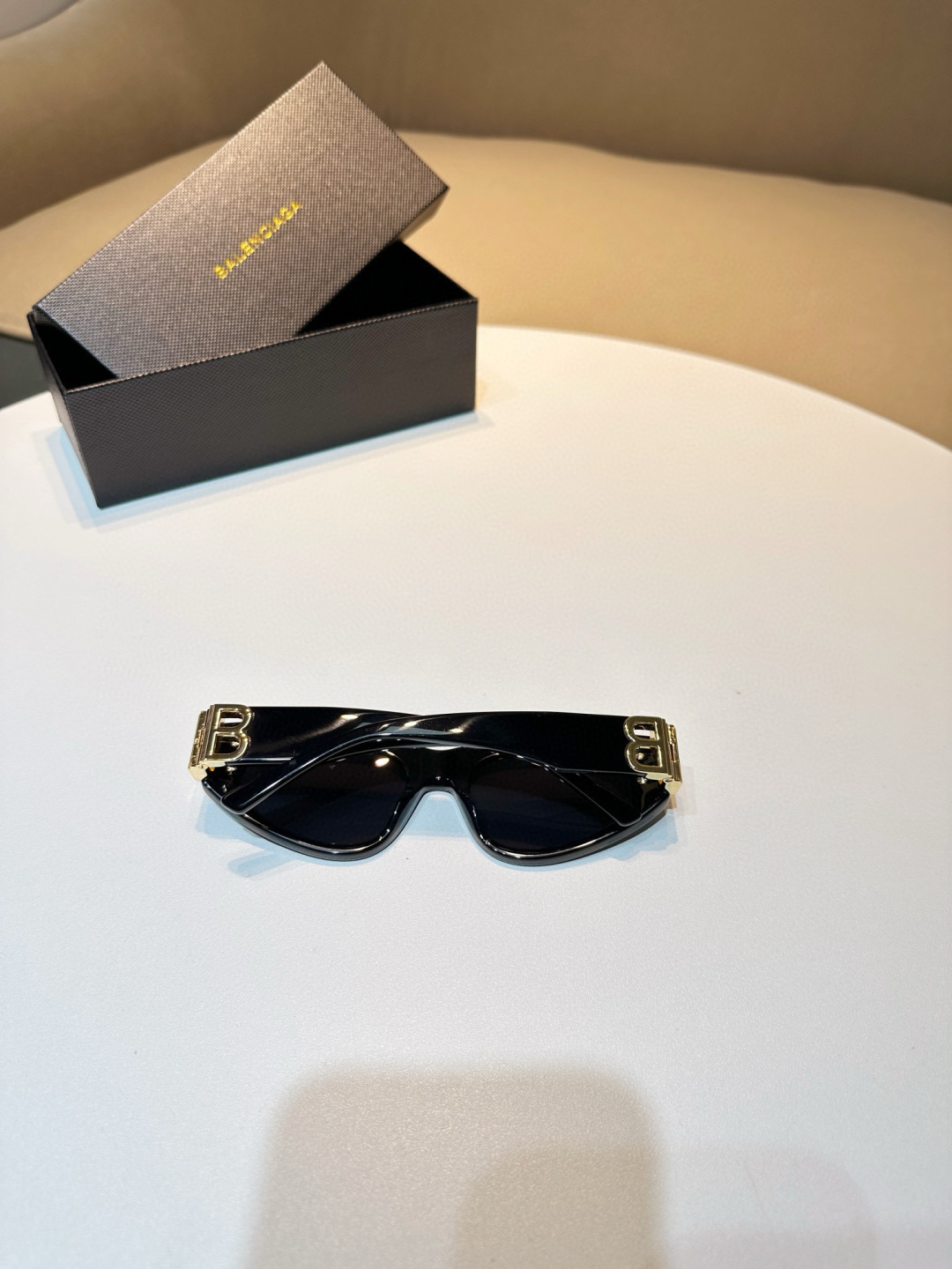 Kiểu gọng lớn đơn giản và ấn tượng, logo kim loại màu vàng ở cả hai bên gọng kính cùng logo chữ cái làm nổi bật phong cách độc đáo của thương hiệu, mặt trên gọn gàng và thời trang