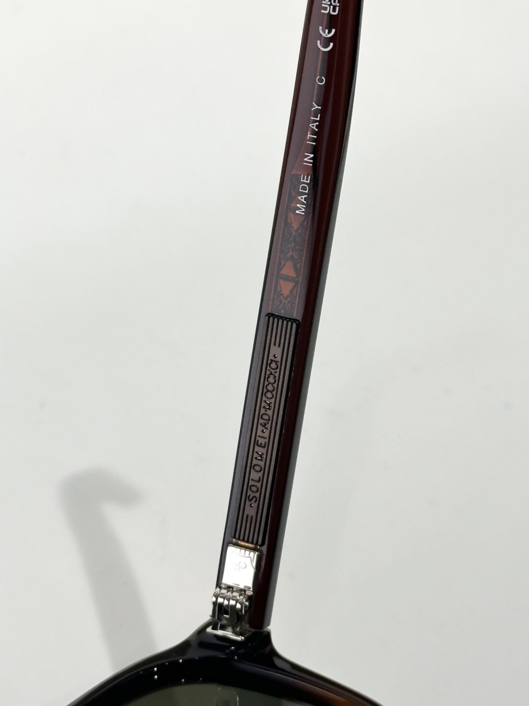 Kiểu gọng lớn đơn giản và ấn tượng, logo kim loại màu vàng ở cả hai bên gọng kính cùng logo chữ cái làm nổi bật phong cách độc đáo của thương hiệu, mặt trên gọn gàng và thời trang