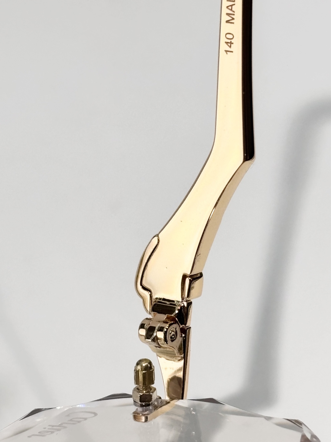 Kiểu gọng lớn đơn giản và ấn tượng, logo kim loại màu vàng ở cả hai bên gọng kính cùng logo chữ cái làm nổi bật phong cách độc đáo của thương hiệu, mặt trên gọn gàng và thời trang