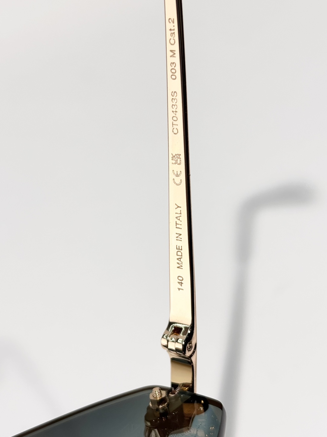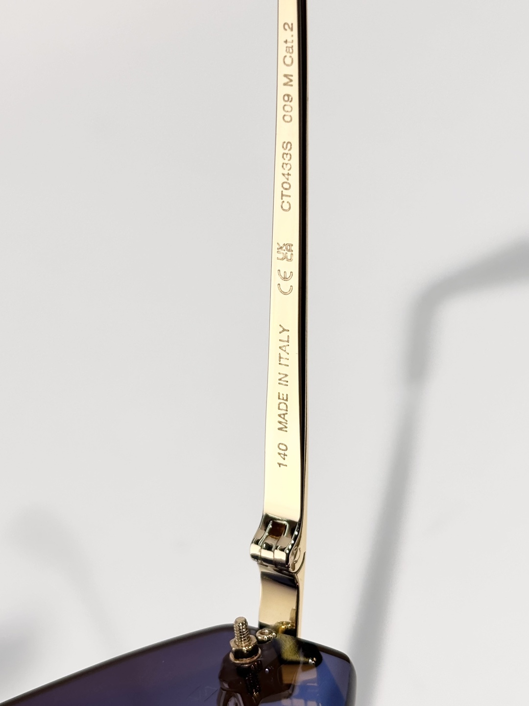 Kiểu gọng lớn đơn giản và ấn tượng, logo kim loại màu vàng ở cả hai bên gọng kính cùng logo chữ cái làm nổi bật phong cách độc đáo của thương hiệu, mặt trên gọn gàng và thời trang