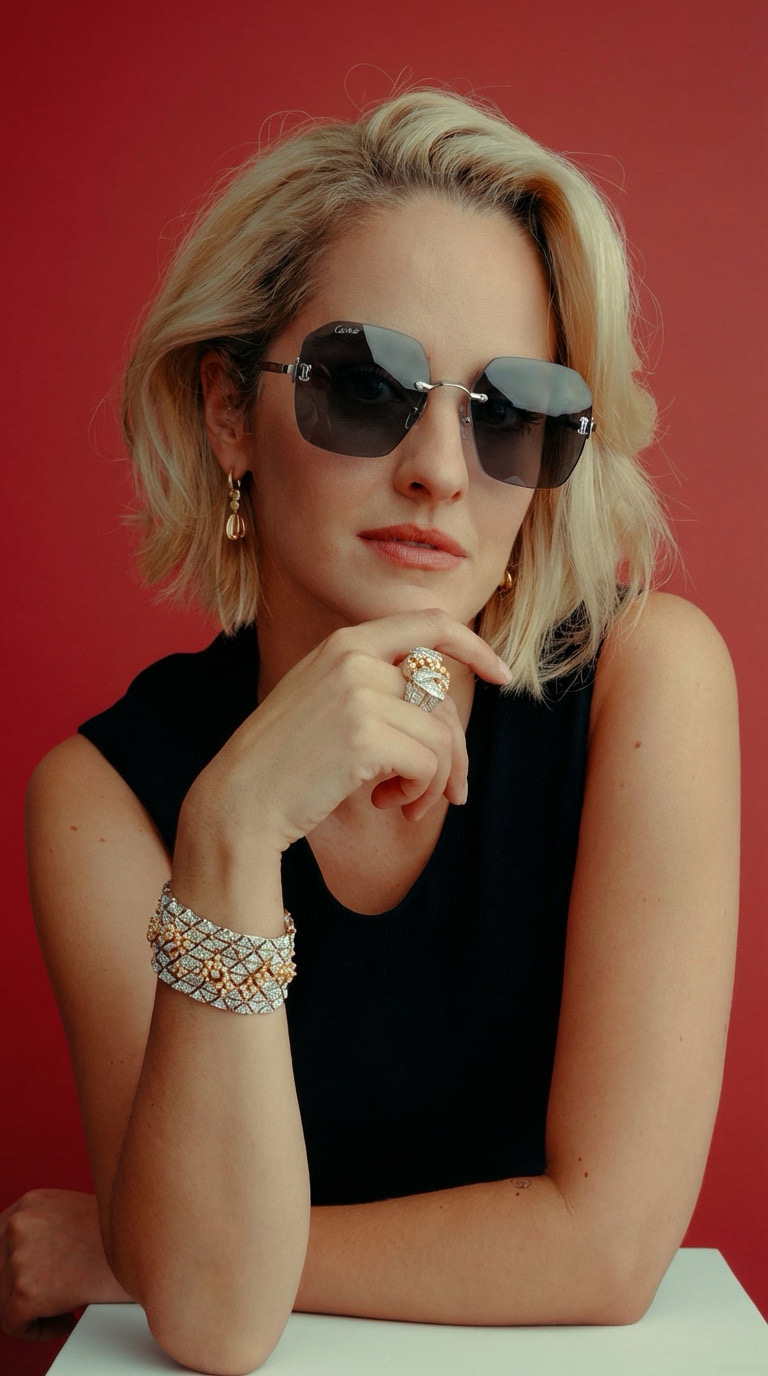 Loạt kính sang trọng bắt đầu từ khái niệm về đồ trang sức, tạo ra một loạt kính mắt hợp tác phá vỡ ranh giới của sự đổi mới. Sự hợp tác này áp dụng một hình bóng tiên phong nhất quán và phá vỡ các chi tiết của hoa tai, nhẫn, vương miện và các phụ kiện khác bằng cách kết hợp cảm hứng vào gọng và chân kính, diễn giải tính cách của nhau theo cách nổi bật nhưng có kết cấu.