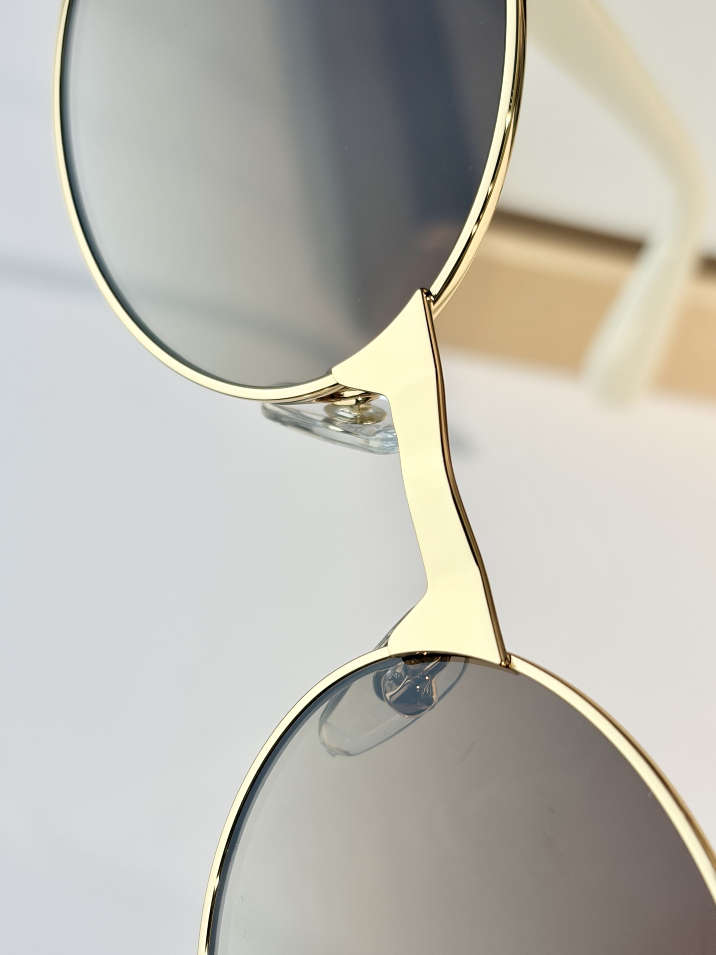 Kiểu gọng lớn đơn giản và ấn tượng, logo kim loại màu vàng ở cả hai bên gọng kính cùng logo chữ cái làm nổi bật phong cách độc đáo của thương hiệu, mặt trên gọn gàng và thời trang