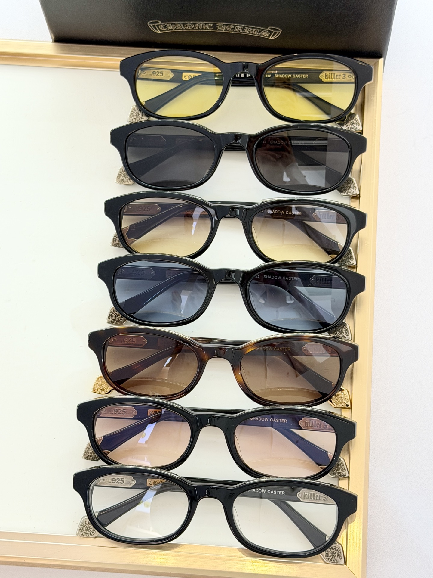 Loạt kính sang trọng bắt đầu từ khái niệm về đồ trang sức, tạo ra một loạt kính mắt hợp tác phá vỡ ranh giới của sự đổi mới. Sự hợp tác này áp dụng một hình bóng tiên phong nhất quán và phá vỡ các chi tiết của hoa tai, nhẫn, vương miện và các phụ kiện khác bằng cách kết hợp cảm hứng vào gọng và chân kính, diễn giải tính cách của nhau theo cách nổi bật nhưng có kết cấu.