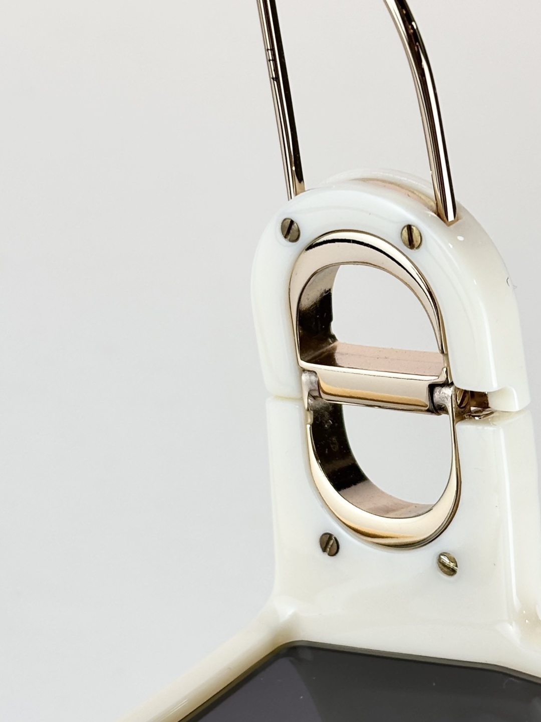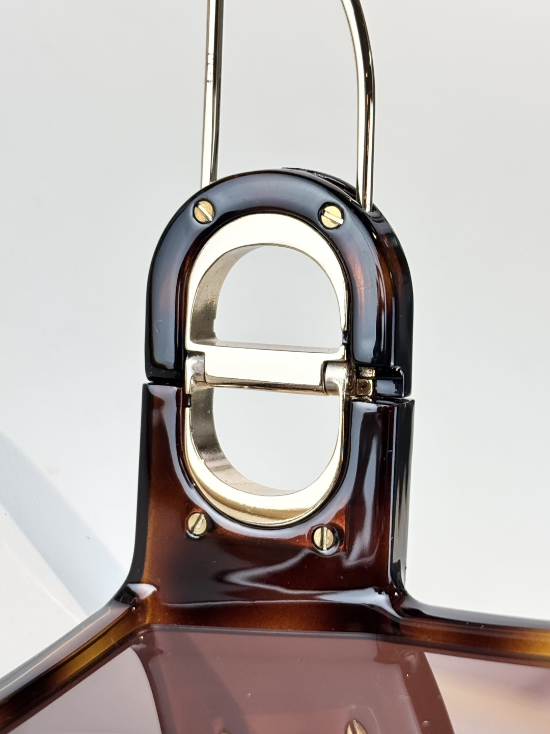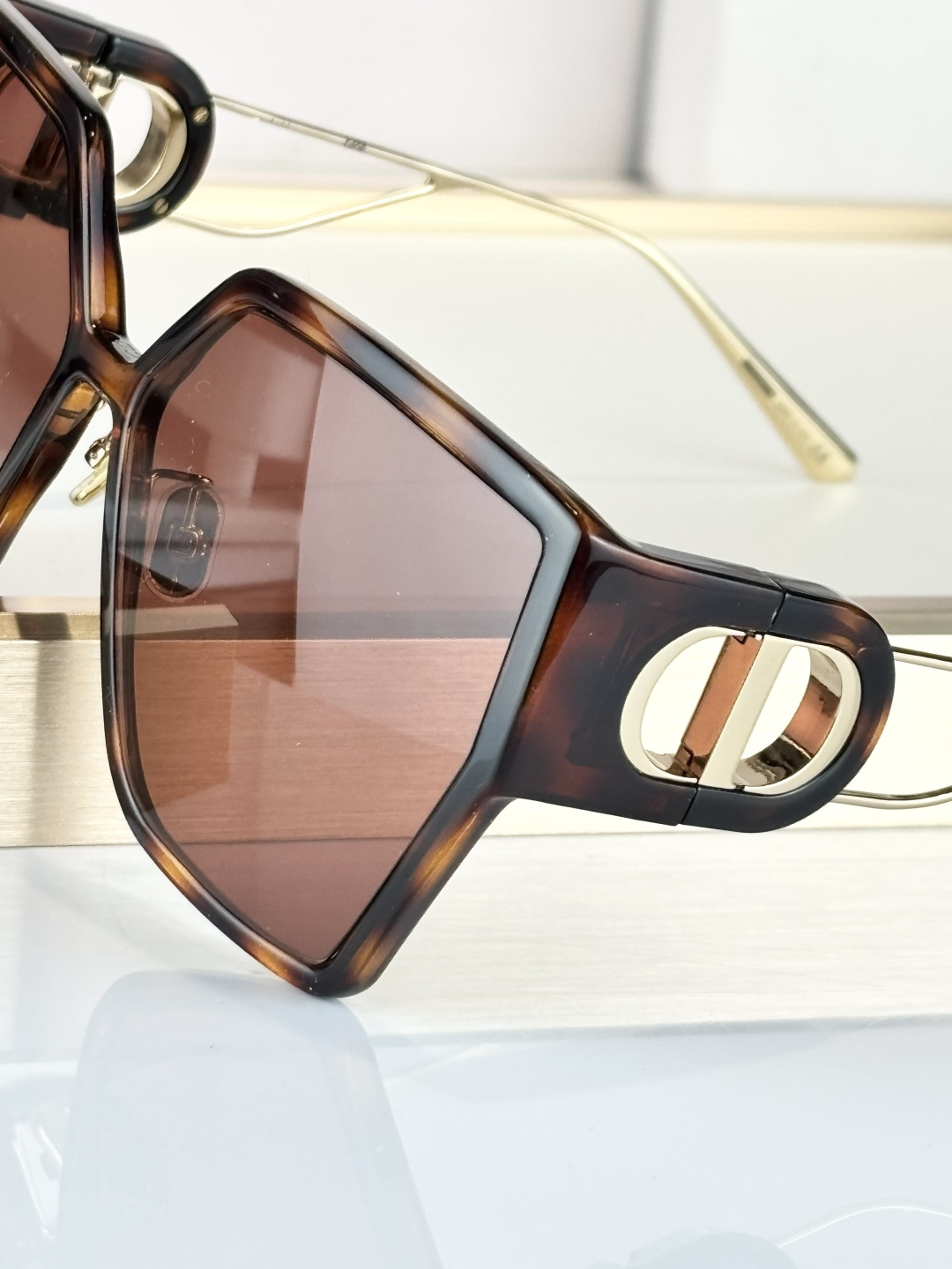 Kiểu gọng lớn đơn giản và ấn tượng, logo kim loại màu vàng ở cả hai bên gọng kính cùng logo chữ cái làm nổi bật phong cách độc đáo của thương hiệu, mặt trên gọn gàng và thời trang