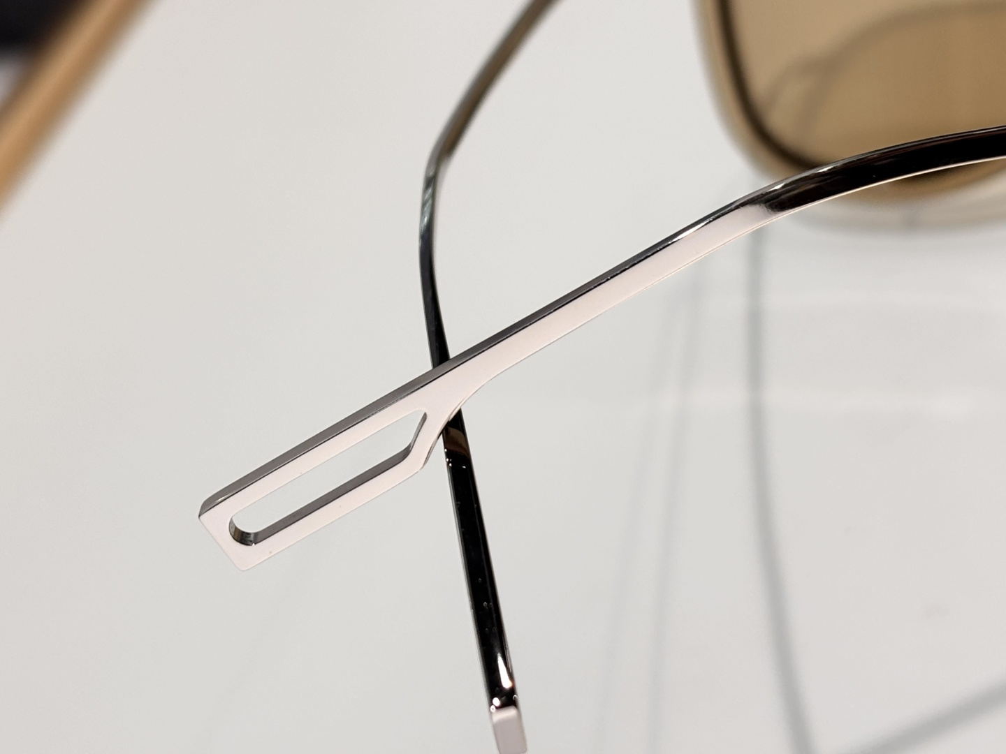 Kiểu gọng lớn đơn giản và ấn tượng, logo kim loại màu vàng ở cả hai bên gọng kính cùng logo chữ cái làm nổi bật phong cách độc đáo của thương hiệu, mặt trên gọn gàng và thời trang