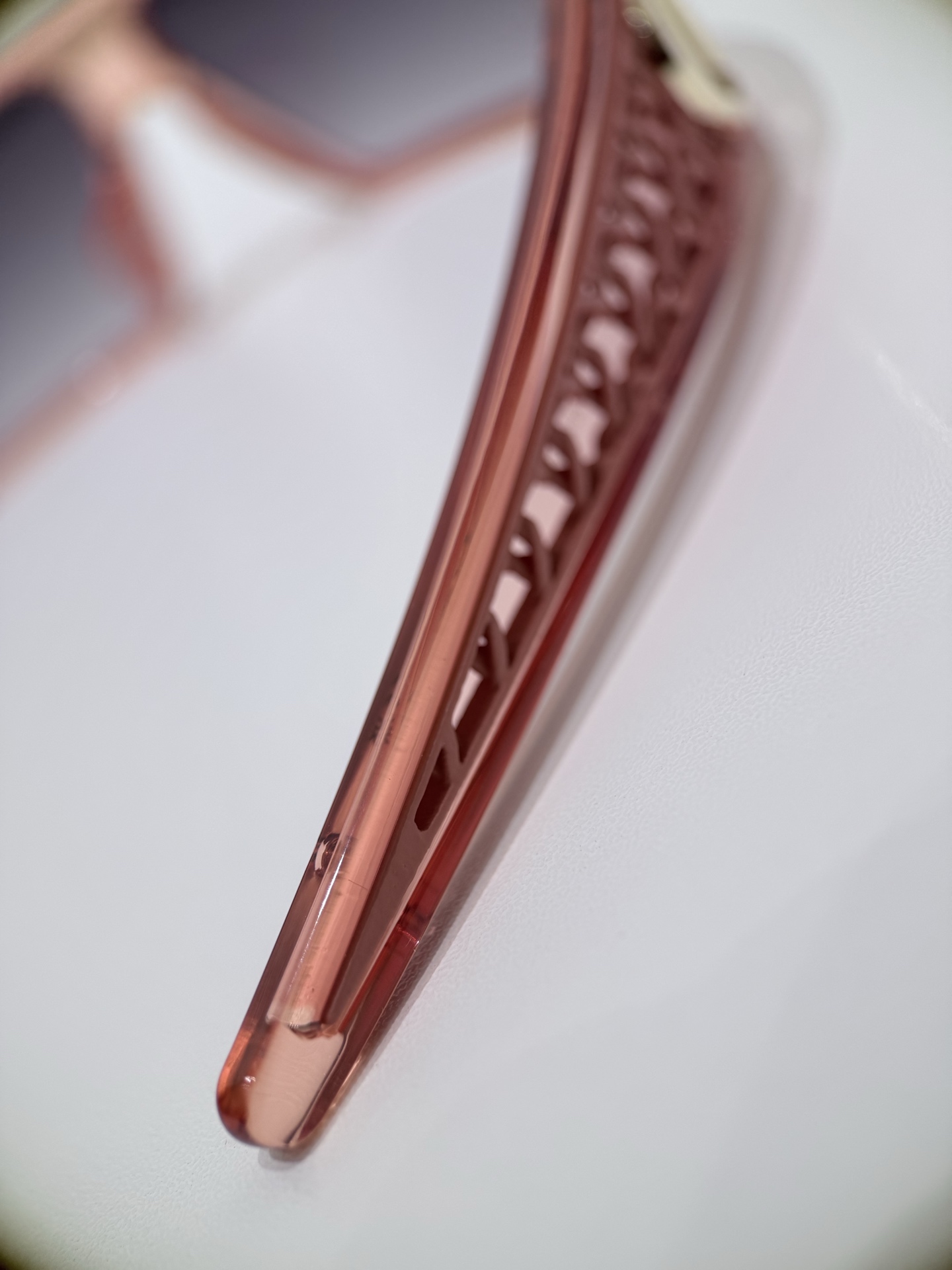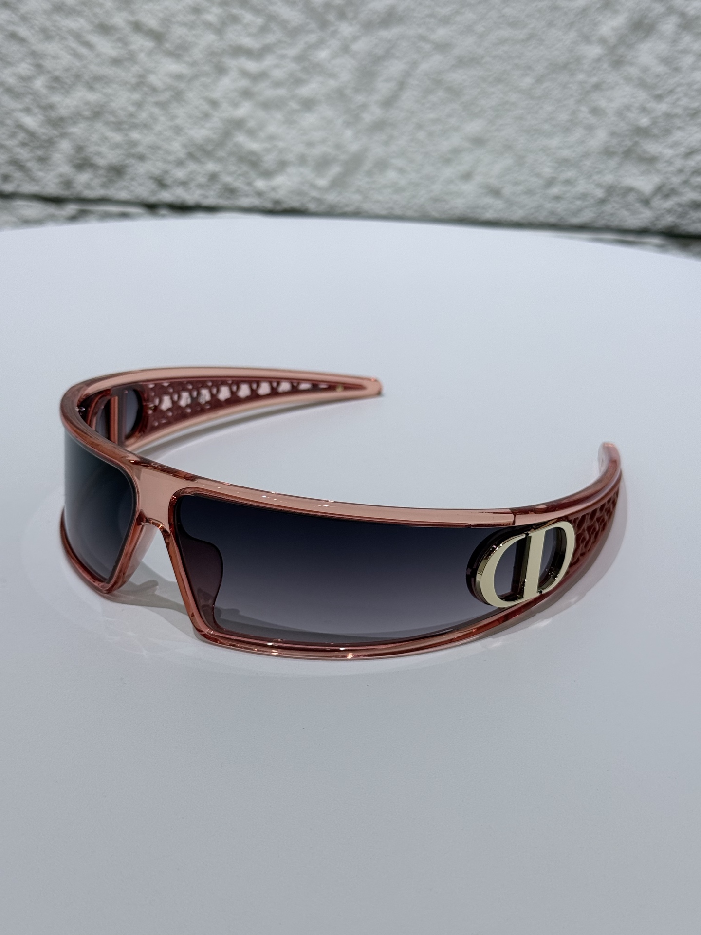 Kiểu gọng lớn đơn giản và ấn tượng, logo kim loại màu vàng ở cả hai bên gọng kính cùng logo chữ cái làm nổi bật phong cách độc đáo của thương hiệu, mặt trên gọn gàng và thời trang
