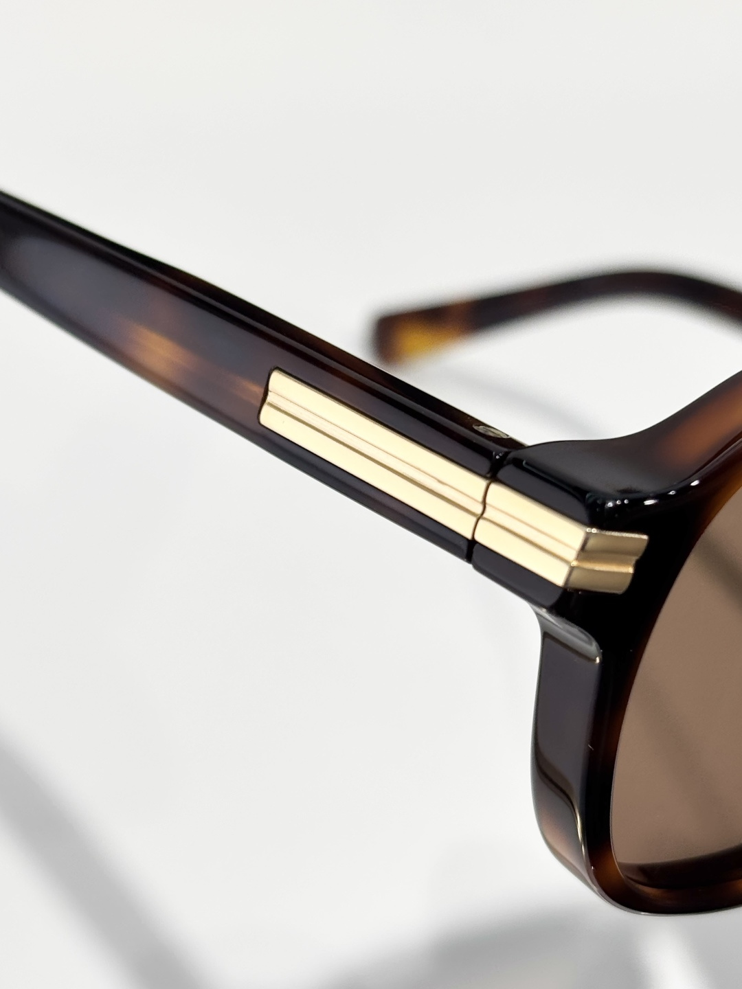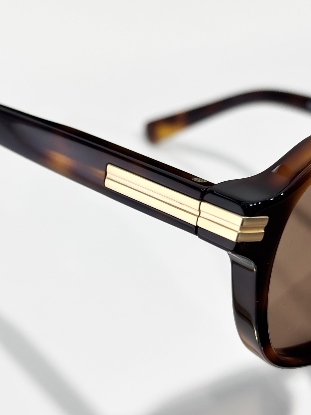 Kiểu gọng lớn đơn giản và ấn tượng, logo kim loại màu vàng ở cả hai bên gọng kính cùng logo chữ cái làm nổi bật phong cách độc đáo của thương hiệu, mặt trên gọn gàng và thời trang