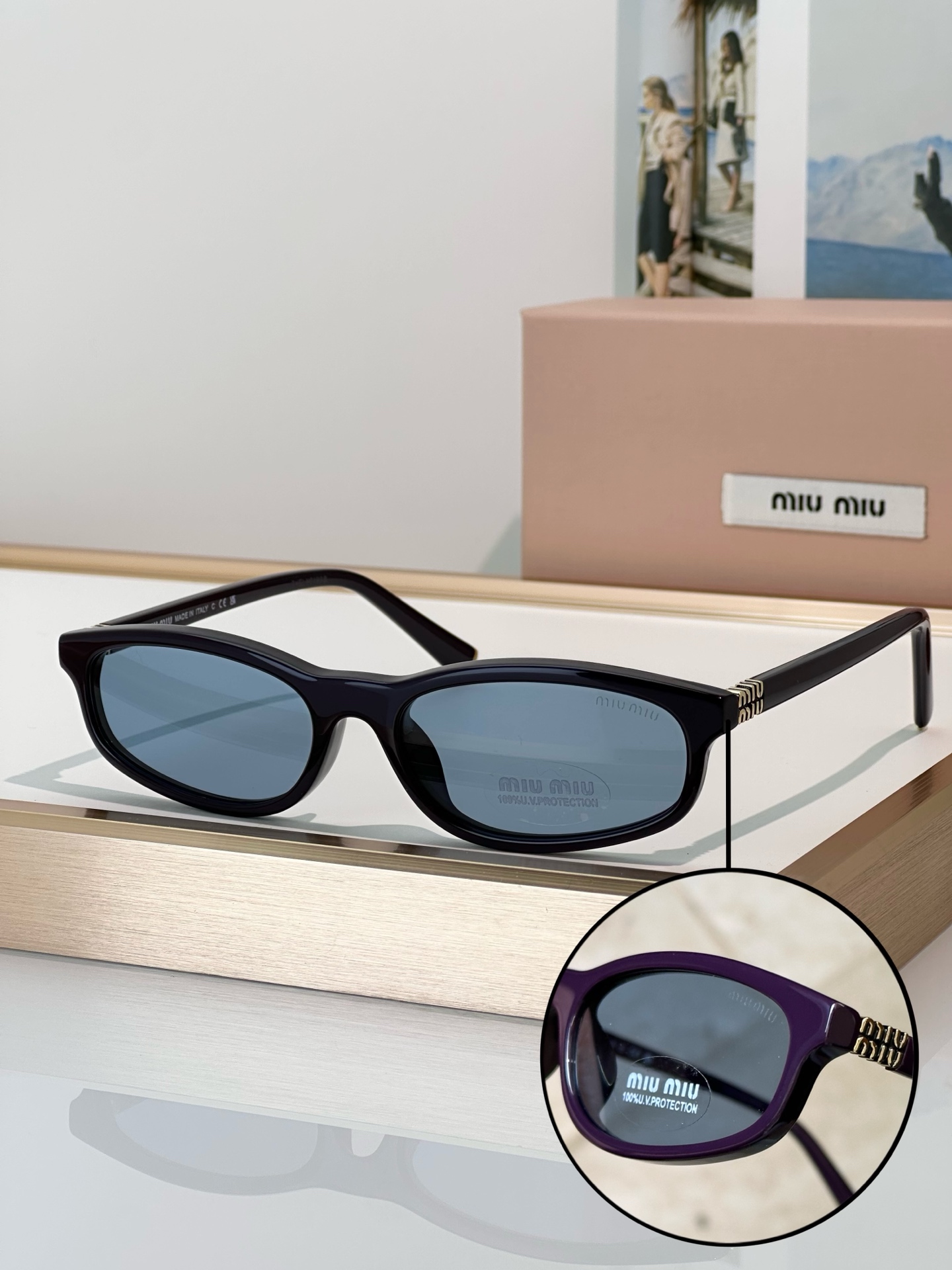 Tích hợp tính thẩm mỹ và tính thực tế.Kính râm mới, cá nhân hóa hơn, có gọng hình chữ nhật thời trang, mang đến nét quyến rũ độc đáo cho nhiều phong cách khác nhau. Logo logo ở bên hông gọng kính rất bắt mắt.
