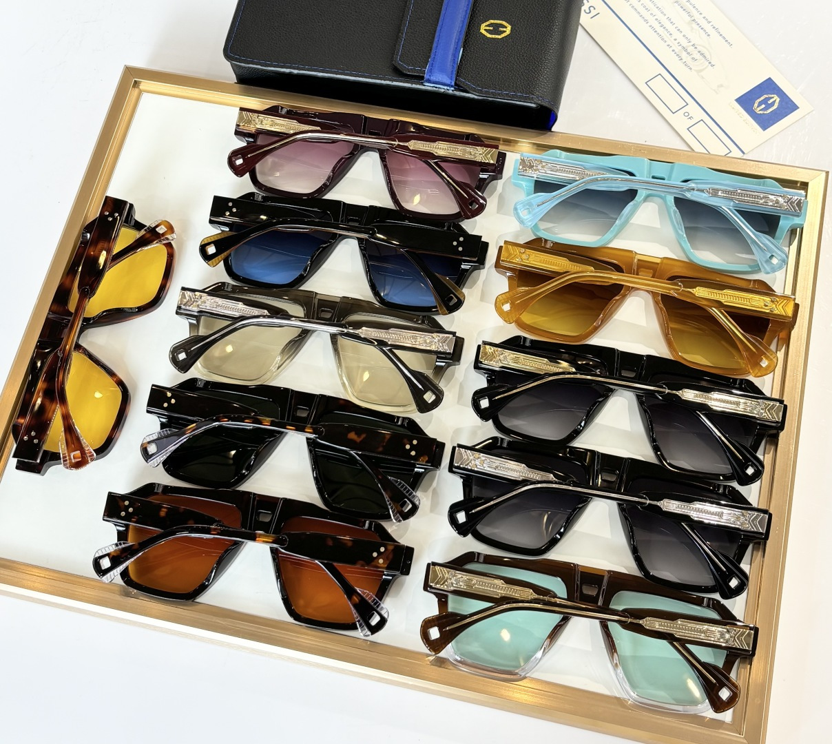 Loạt kính sang trọng bắt đầu từ khái niệm về đồ trang sức, tạo ra một loạt kính mắt hợp tác phá vỡ ranh giới của sự đổi mới. Sự hợp tác này áp dụng một hình bóng tiên phong nhất quán và phá vỡ các chi tiết của hoa tai, nhẫn, vương miện và các phụ kiện khác bằng cách kết hợp cảm hứng vào gọng và chân kính, diễn giải tính cách của nhau theo cách nổi bật nhưng có kết cấu.