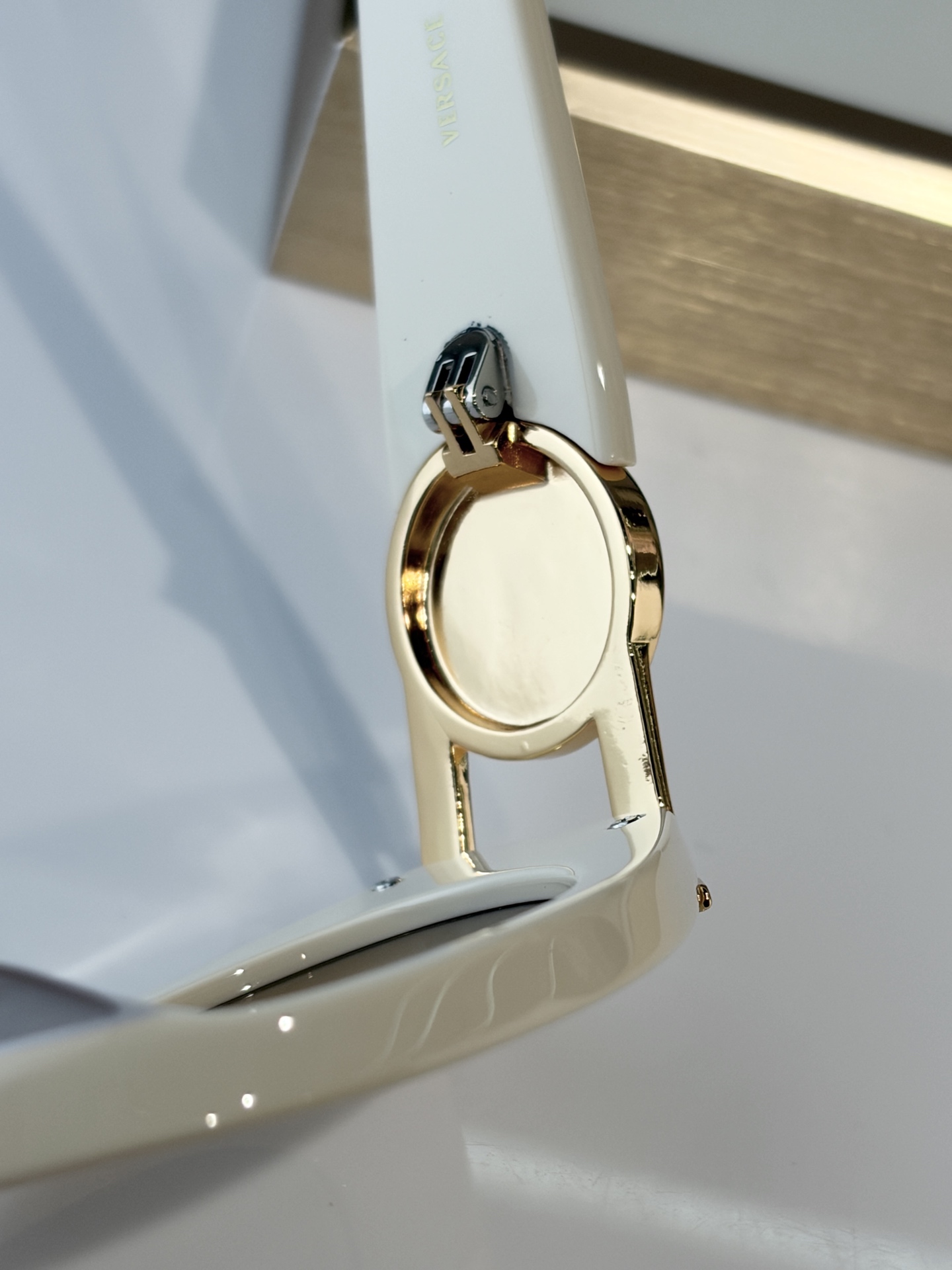 Kiểu gọng lớn đơn giản và ấn tượng, logo kim loại màu vàng ở cả hai bên gọng kính cùng logo chữ cái làm nổi bật phong cách độc đáo của thương hiệu, mặt trên gọn gàng và thời trang