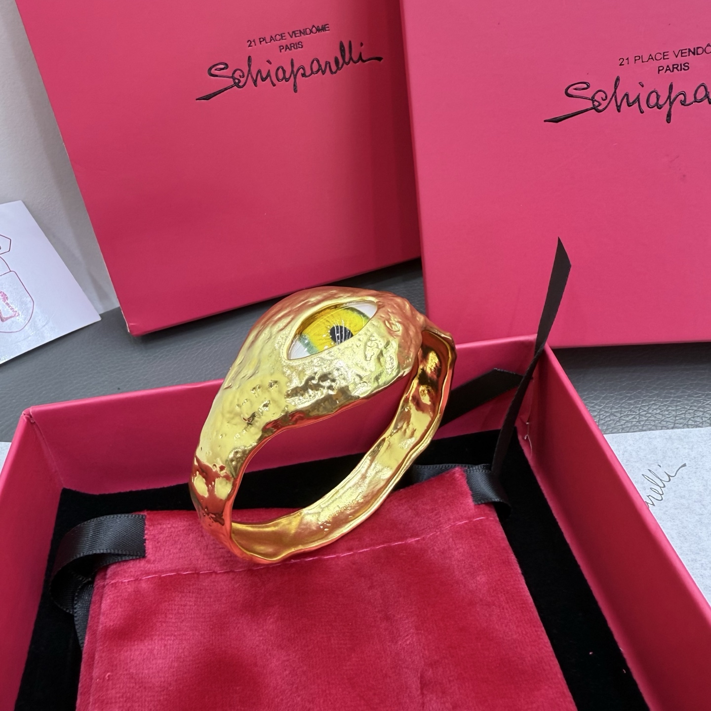 Phong cách phụ kiện của Schiaparelli sử dụng các chất liệu như trang sức, men tráng và vàng để tạo ra những chiếc khuyên tai hình nhãn cầu, kính mắt trang trí kỳ dị phóng đại, mặt nạ vàng, sơn móng tay đỏ, vòng cổ ngọc trai và răng, và nhiều hơn nữa. Những món đồ cực kỳ xa hoa này sử dụng các đường nét để thể hiện sự chuyển động tự do giữa tưởng tượng và hiện thực, để lại ấn tượng khó phai. Ngay cả ngày nay, trang sức của Schiaparelli vẫn giữ được nét độc đáo và giàu trí tưởng tượng, phản ánh tinh thần nổi loạn và đột phá cốt lõi của thương hiệu. Phong cách kỳ lạ và huyền ảo của nó pha trộn giữa sự lãng mạn nghệ thuật với tinh thần siêu thực.