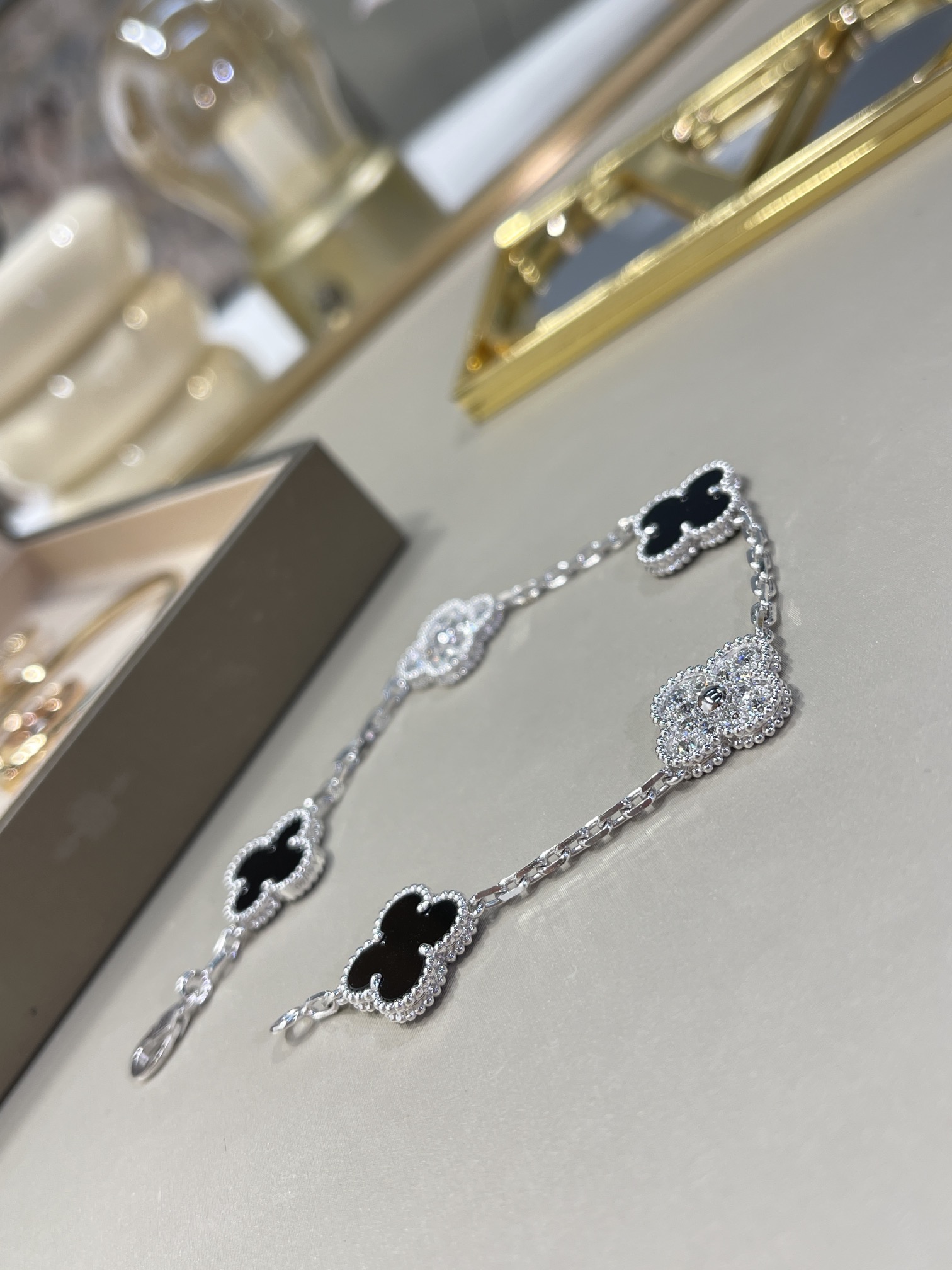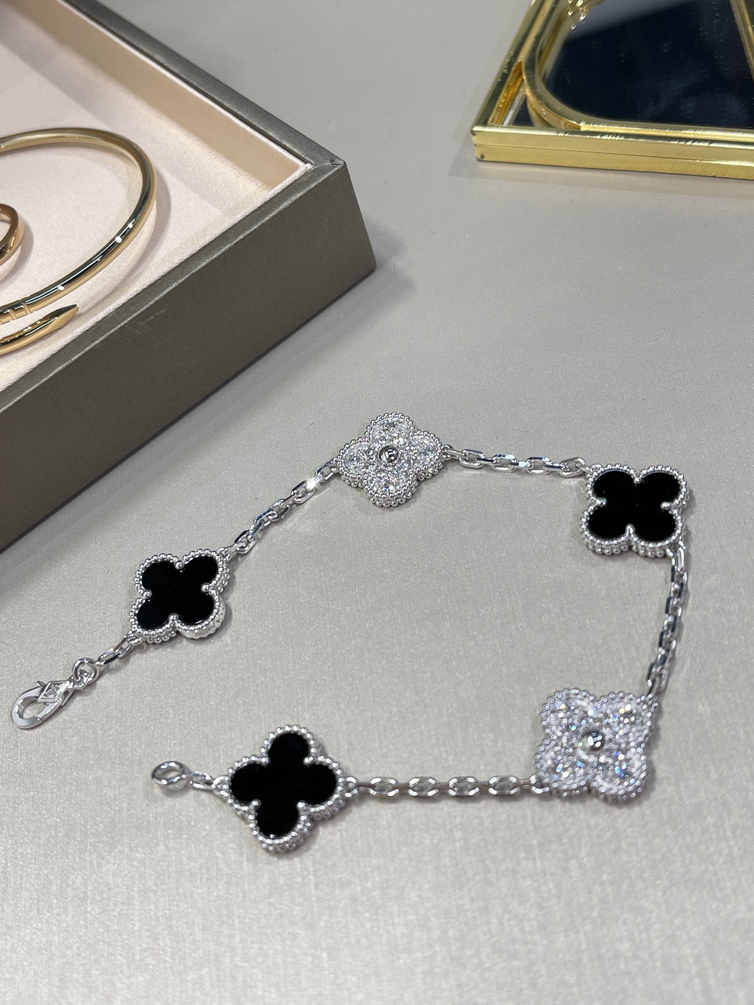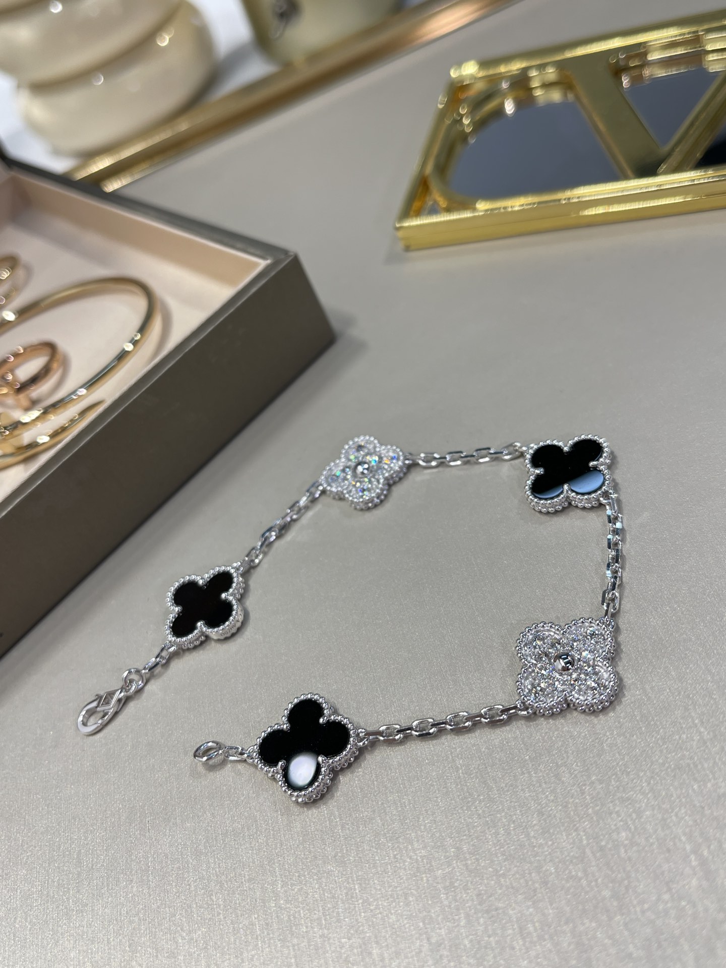 LẮC TAY VAN CLEEF & ARPELS BLACK ONYX DAMOND ĐÁ MÃ NÃO ĐEN