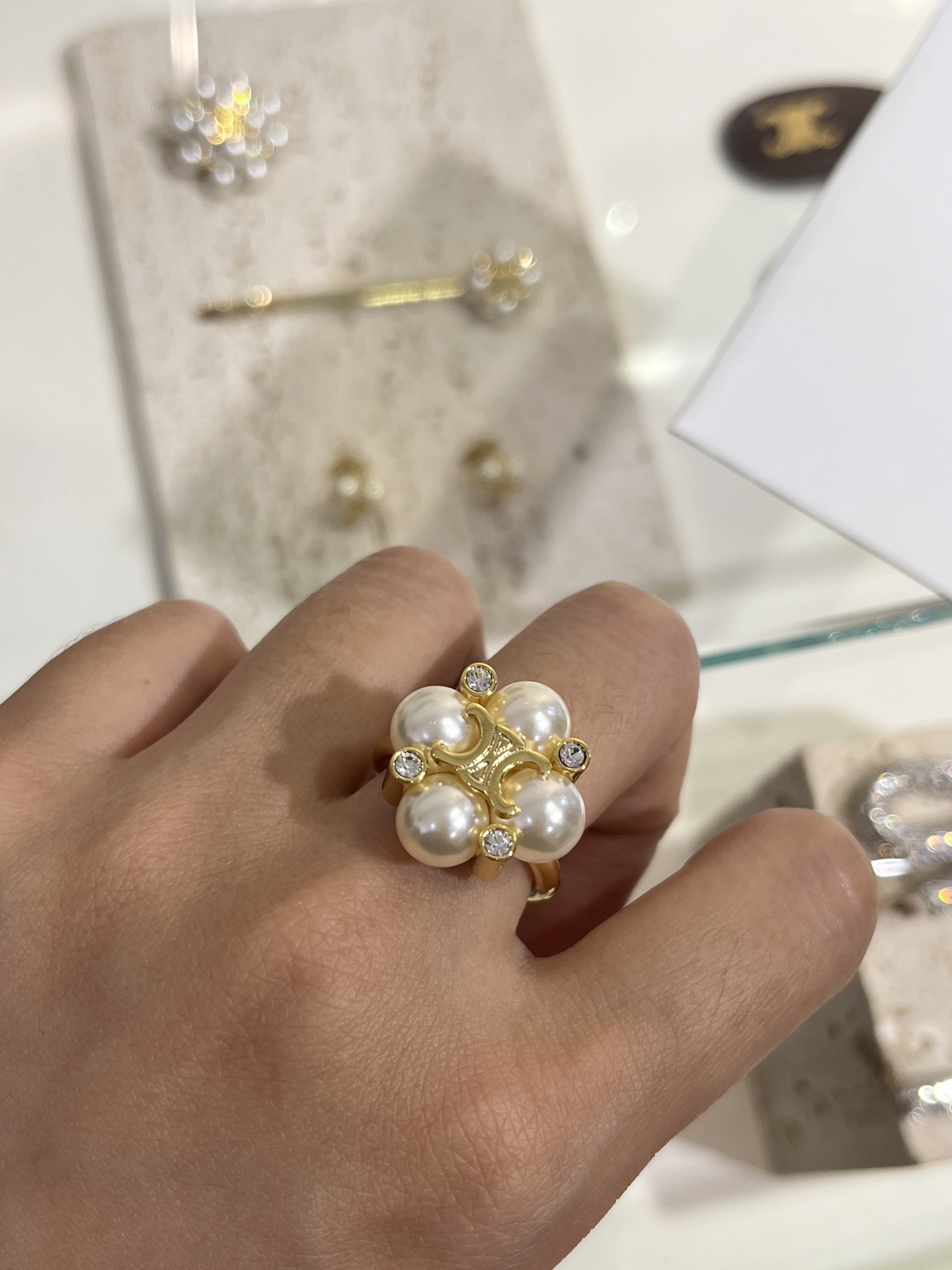 Bộ sưu tập 𝑪𝑬𝑳𝑰𝑵𝑬 25ss Nhẫn ngọc trai Daisy Kích cỡ: 6 7 8 (Nhỏ)