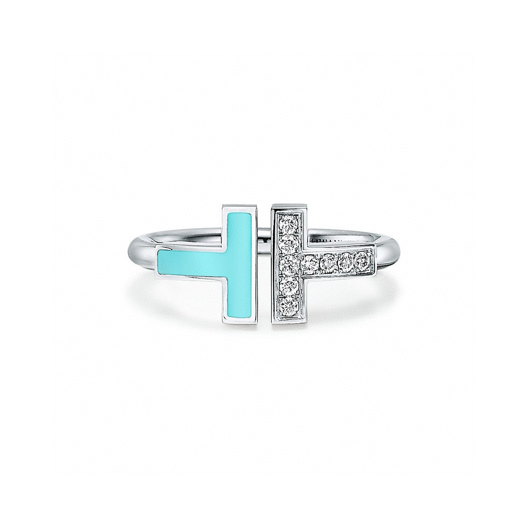 Nhẫn Tiffany T Series Phiên bản CNC Trọn bộ hộp Tiffany chính hãng kèm hình ảnh giao hàng Nhẫn Tiffany&Co Classic T-shaped Series Turquoise đính kim cương bạc Double T Chất liệu vàng V mạ điện hai lớp dày
