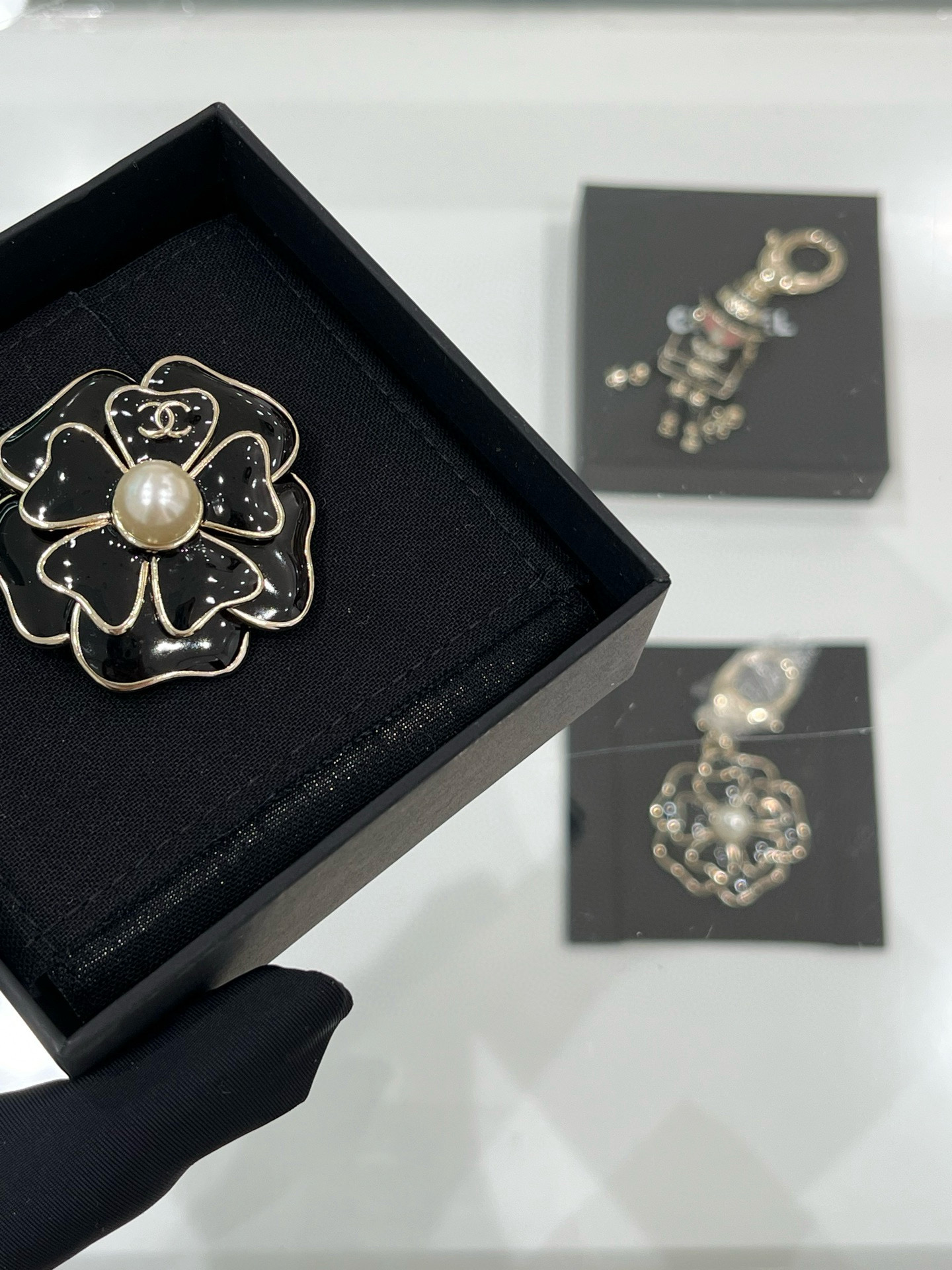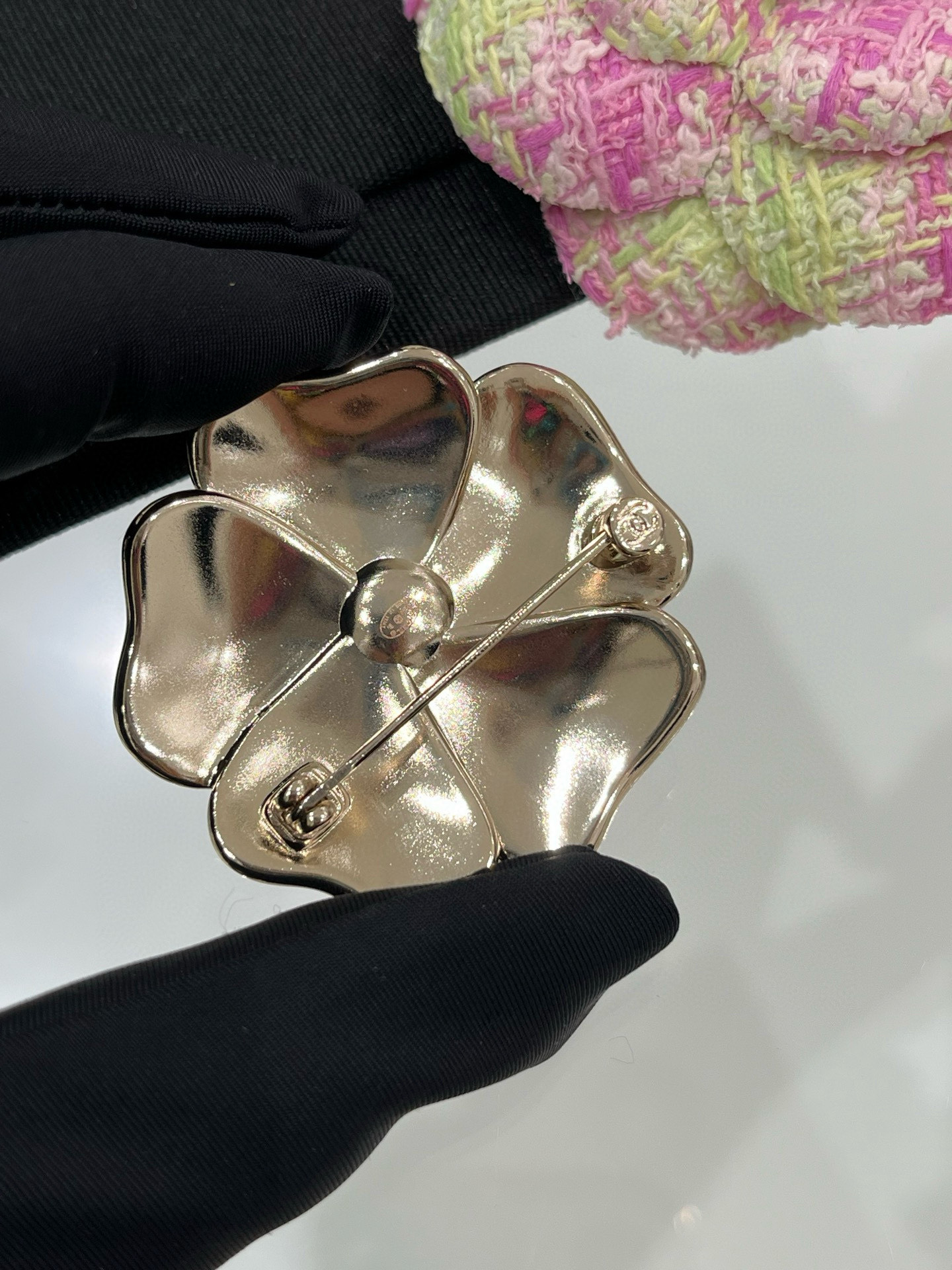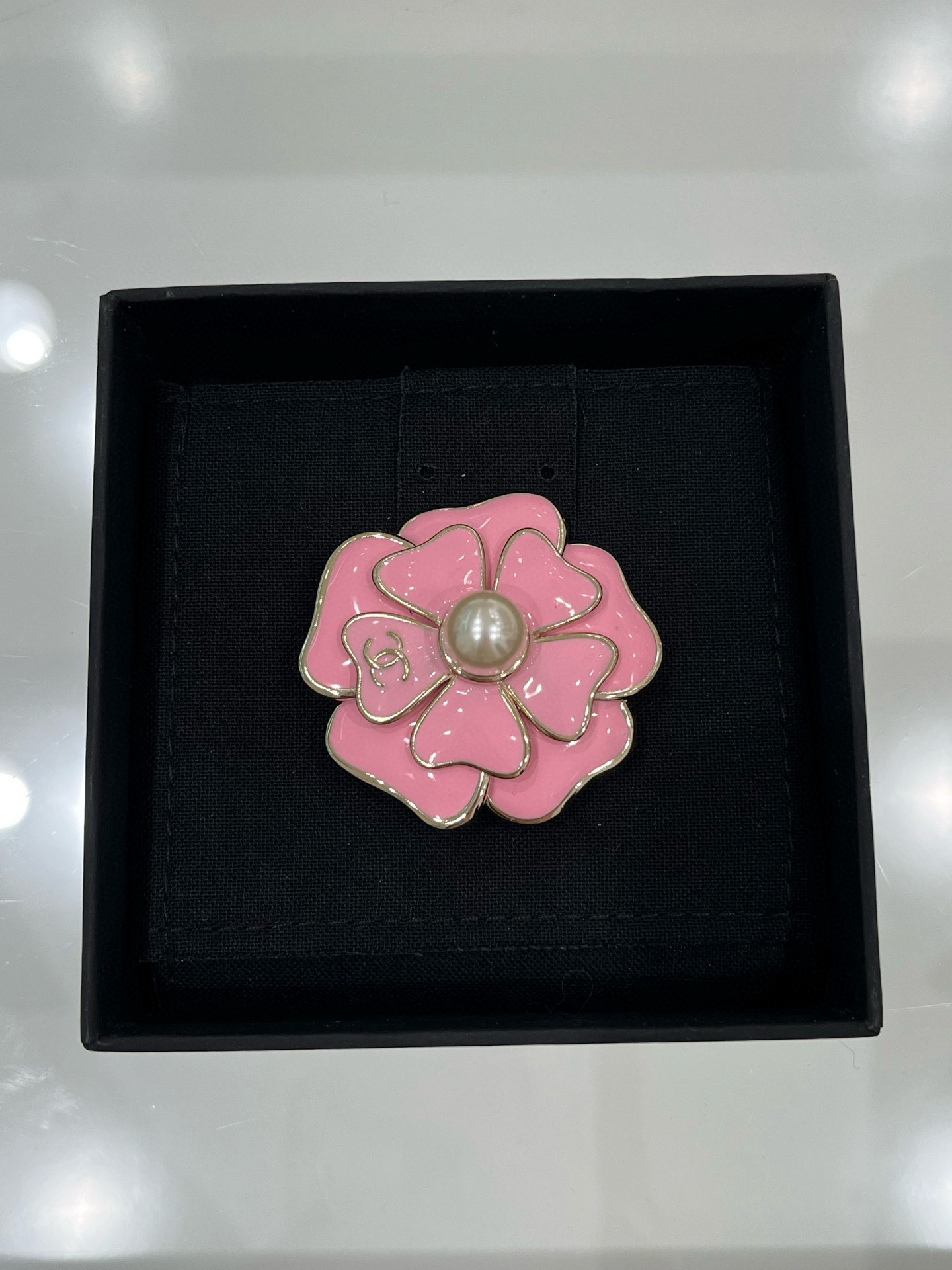 TRÂM CÀI CHANEL 25B NƠ VÀNG ĐEN ORNAMENT.Trâm cài Chanel 25B Vàng hồng/Vàng đen tráng men hình hoa trà hai cánh đính ngọc trai và logo chữ C kép 🌸 Vàng hồng: ngọt ngào và đẹp mắt. Vàng đen: thanh lịch và sang trọng, thể hiện khí chất. Hoa trà cổ điển kết hợp với logo chữ C kép và ngọc trai. Quan sát kỹ hơn, mỗi cánh hoa đều có hình trái tim, toát lên vẻ cao cấp và sang trọng. Món đồ thời trang sành điệu cho mùa thu đông này là vật dụng không thể thiếu trong tủ quần áo.