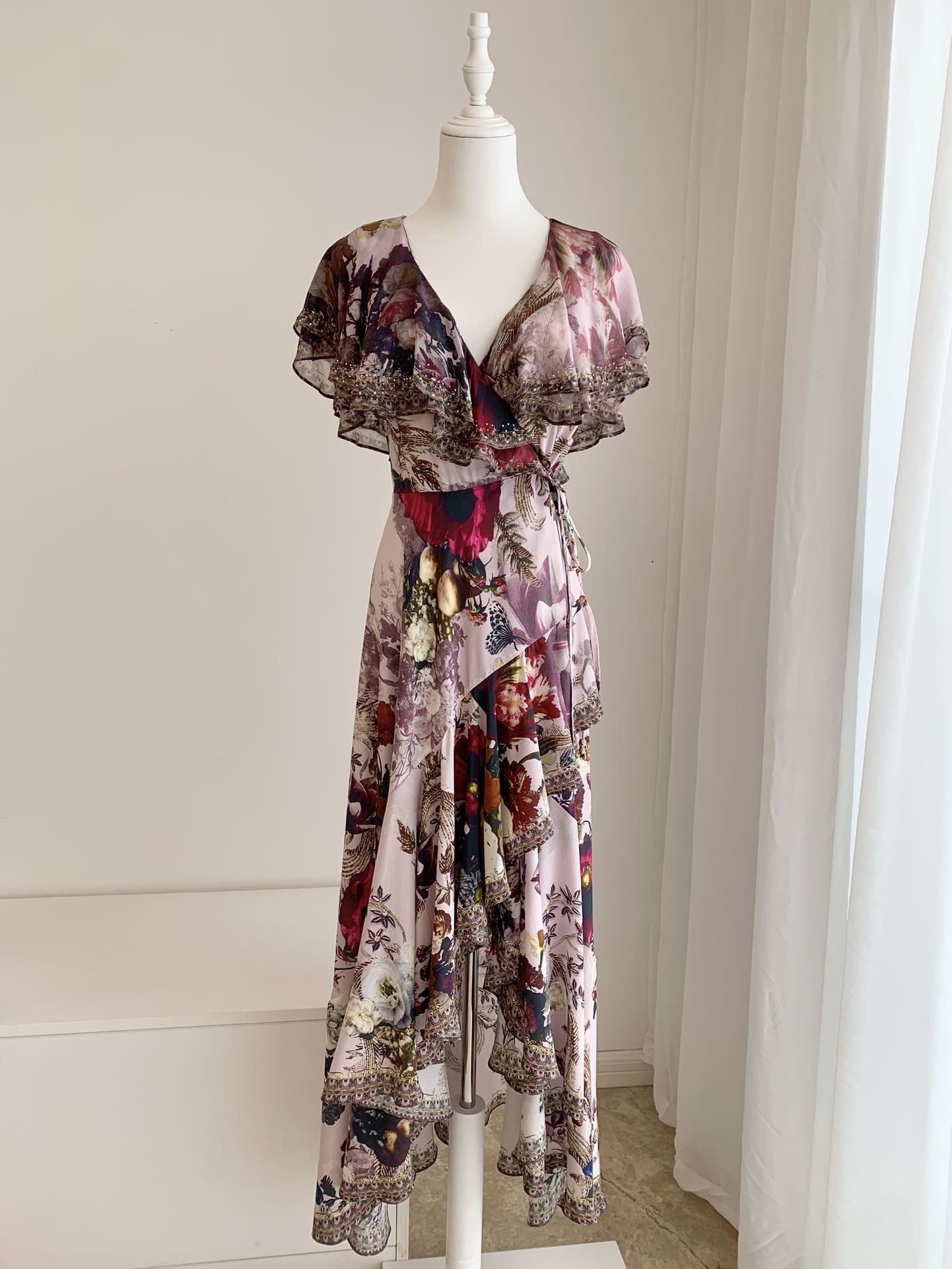 Mẫu xuân hè mới "CAMILLA" nằm trong loạt sản phẩm cao cấp,vải nhập khẩu được làm từ 100% vải lụa nhăn đôi - Được trang trí bằng các họa tiết in hoa định vị độc đáo - Có kiểu dáng siêu dài và thoải mái - Đường viền cổ chữ V sâu - Tay áo loe co giãn - Nút và tab ở giữa túi phía trước - Điểm nhấn pha lê trang trí bằng tay - Đi kèm thắt lưng buộc dây có thể tháo rời
