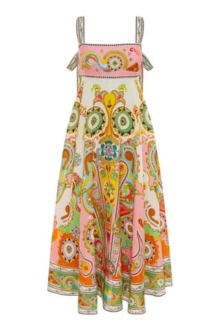 ALÉMAIS' 'Pinball' midi dress is defined by its vivid patterns, making it a standout choice for summer occasions. It’s crafted from lightweight linen with a squared neckline and has a fitted bodice that's shirred at the back. Wear yours with chunky sandals.