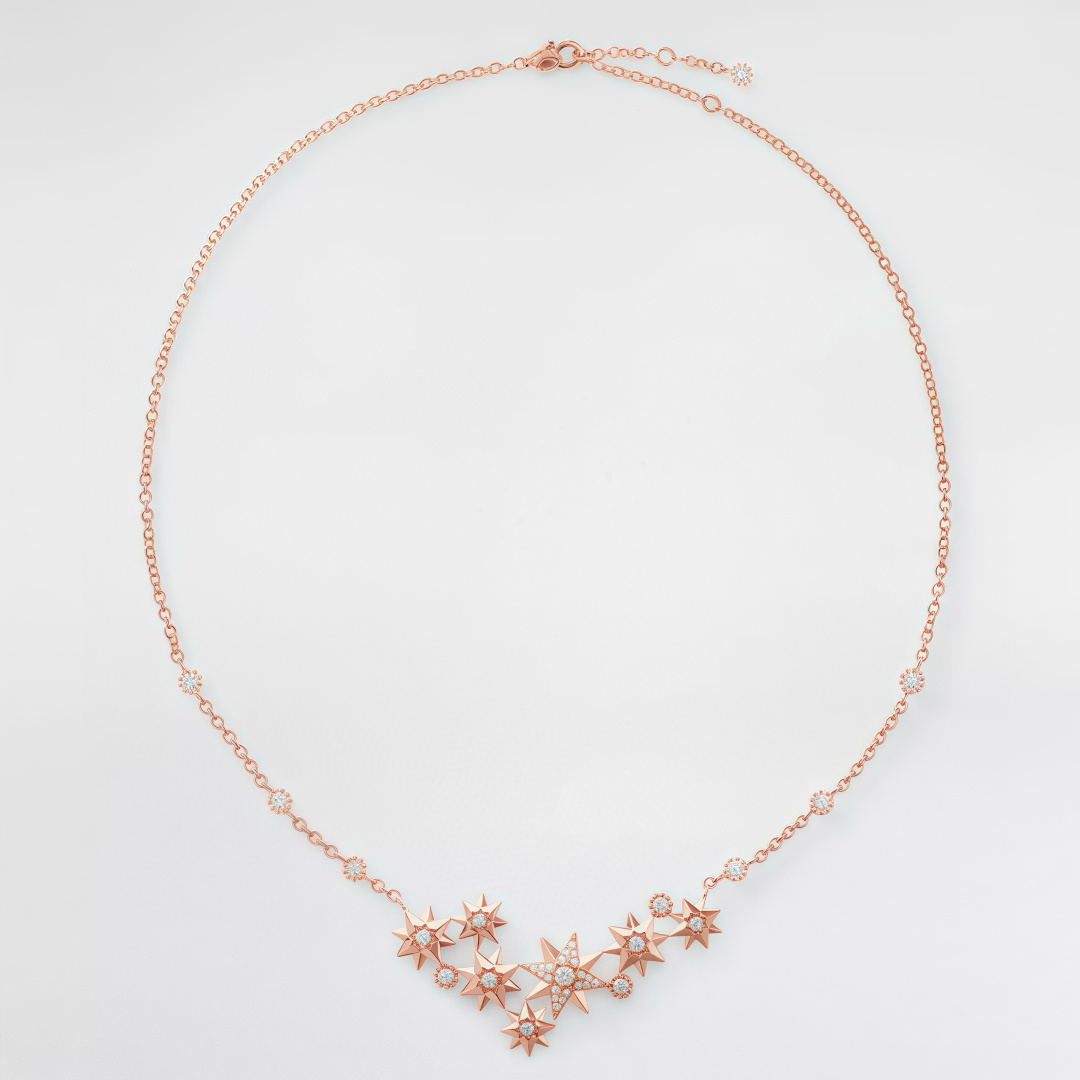 Bộ sưu tập trang sức cao cấp Vòng cổ la bàn bát giác vàng hồng kỷ niệm 25 năm mới. La bàn bát sao vàng hồng dịu dàng nhưng mạnh mẽ. Kích thước khác nhau, được sắp xếp so le, lấp lánh với ánh sáng quyến rũ và linh hoạt Vẻ ngoài kín đáo và quý phái của người phụ nữ giàu có được mọi người yêu thích. Trang sức cao cấp phiên bản kỷ niệm 10 năm, bạc 925 khảm đá zircon tùy chỉnh. Vòng cổ Ngôi sao may mắn kèm hộp đựng.