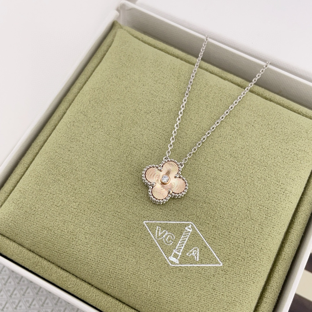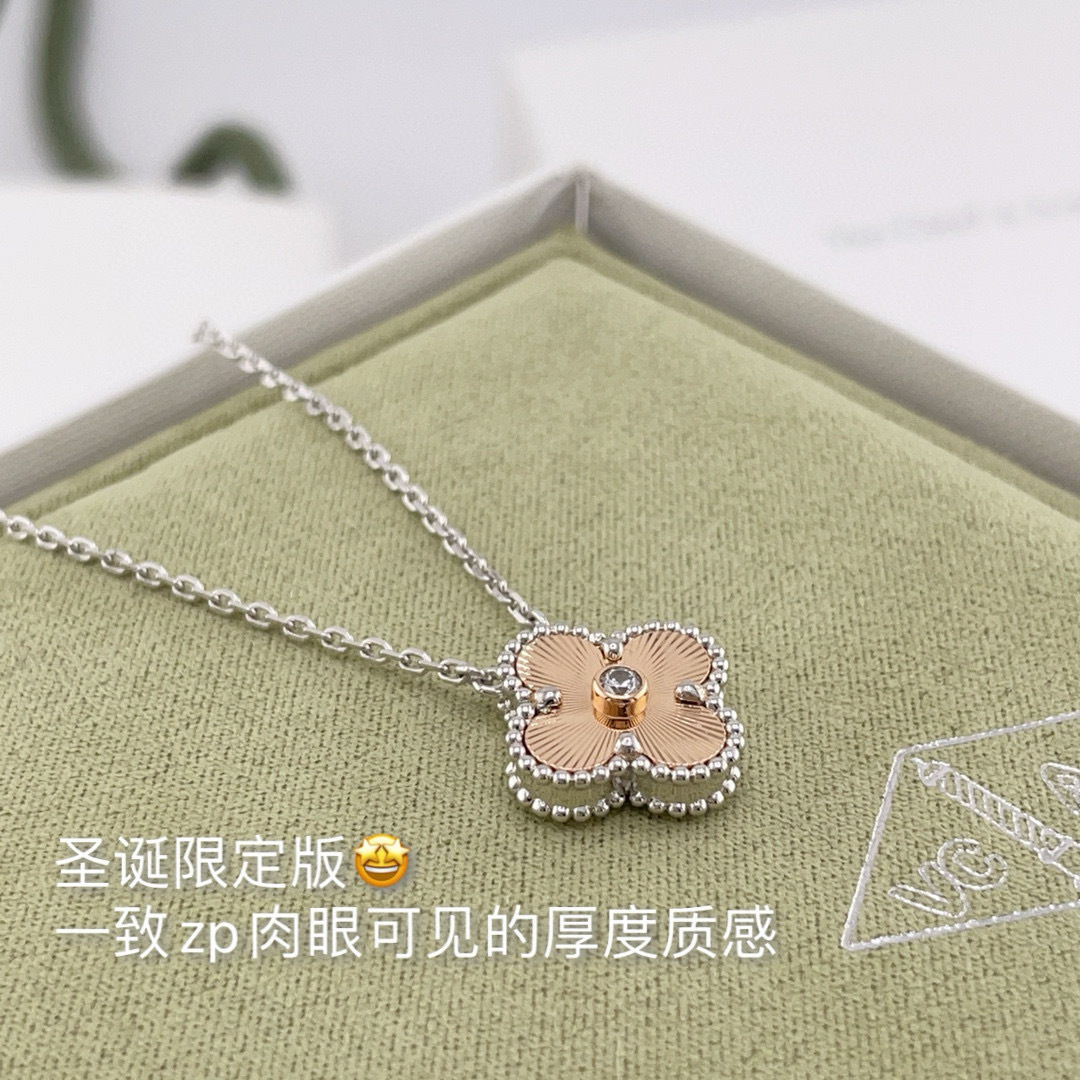Dây chuyền hình cỏ ba lá đính laser phối màu phiên bản giới hạn 𝑉𝑎𝑛 𝑐𝑙𝑒𝑒𝑓 &𝐴𝑟𝑝𝑒𝑙𝑠 💕 Bộ sưu tập VIP nhất định phải mua. Phiên bản giới hạn Giáng sinh năm nay là bạch kim với laser vàng hồng. Màu sắc rất đặc biệt. Trông rất đẹp để đeo hàng ngày và rất đa năng, rất thiết thực. Chế tác trang sức bằng máy CNC: Kim cương Mozambique